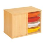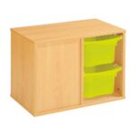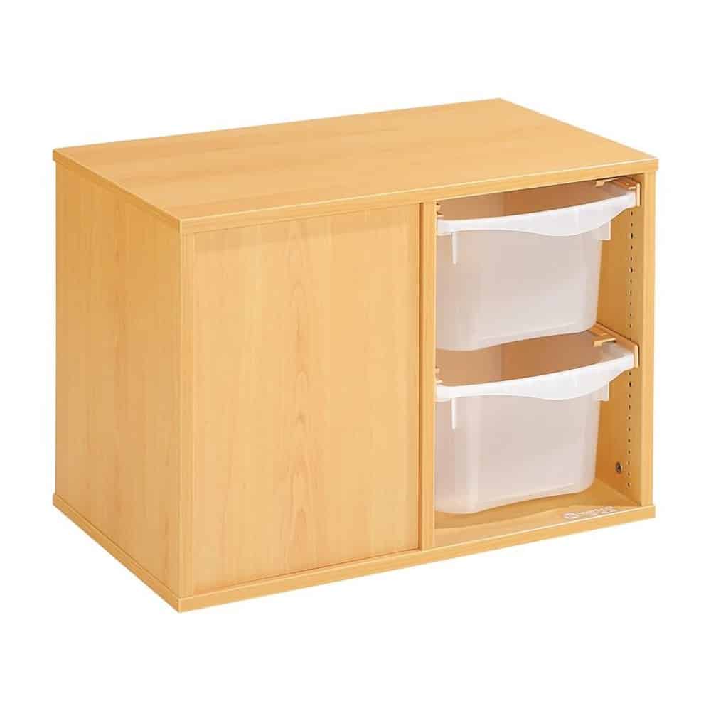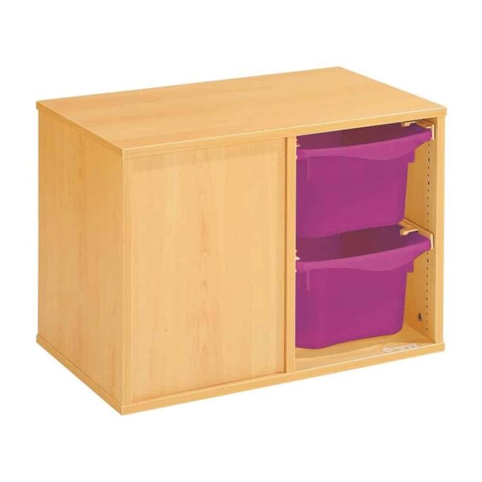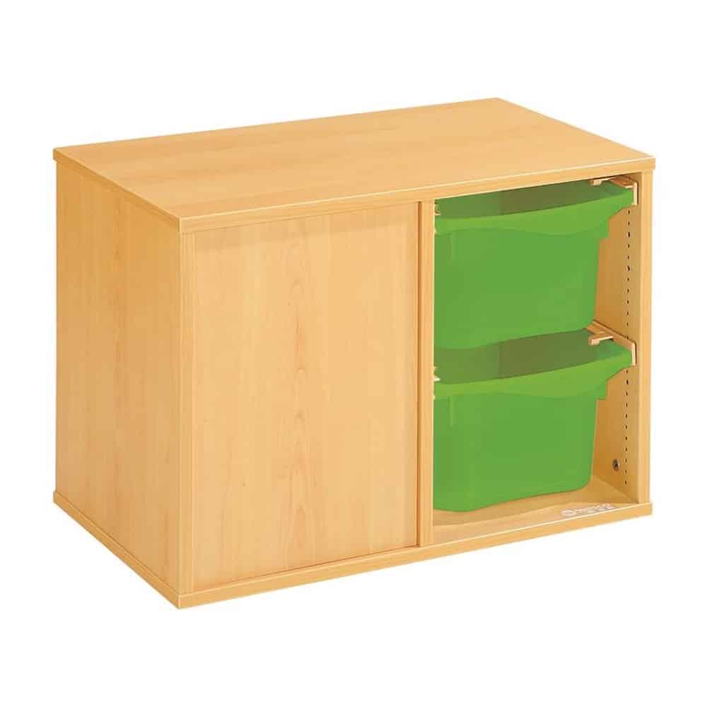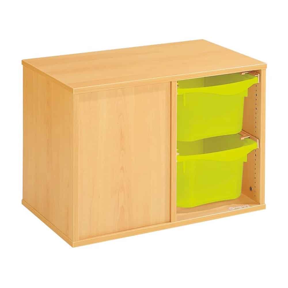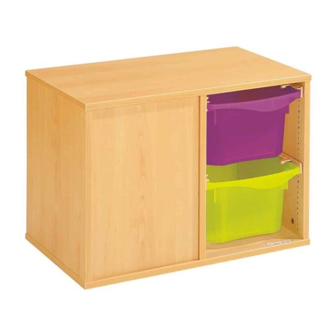 Doppelseitiges Regal mit 6 Behälter auf Schienen – Höhe: 51 cm – Länge: 70,5 cm für KiTas & Kindergärten