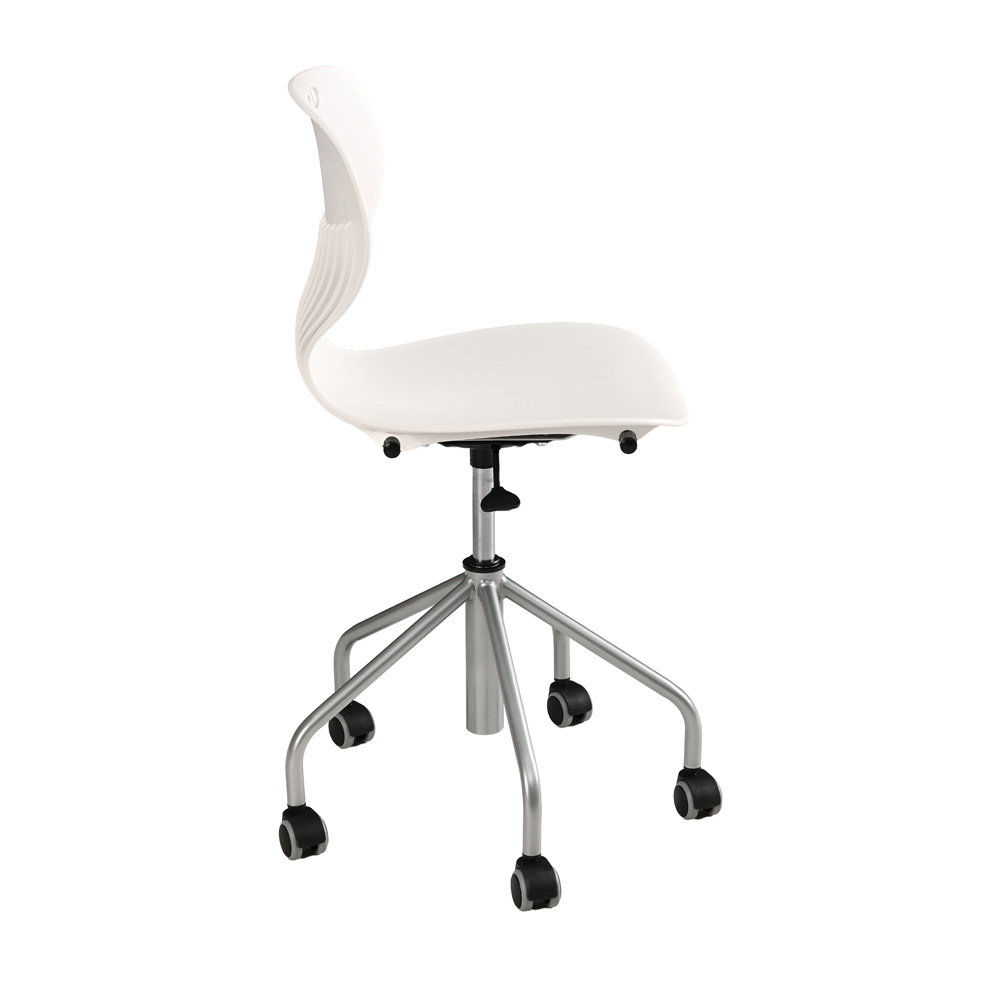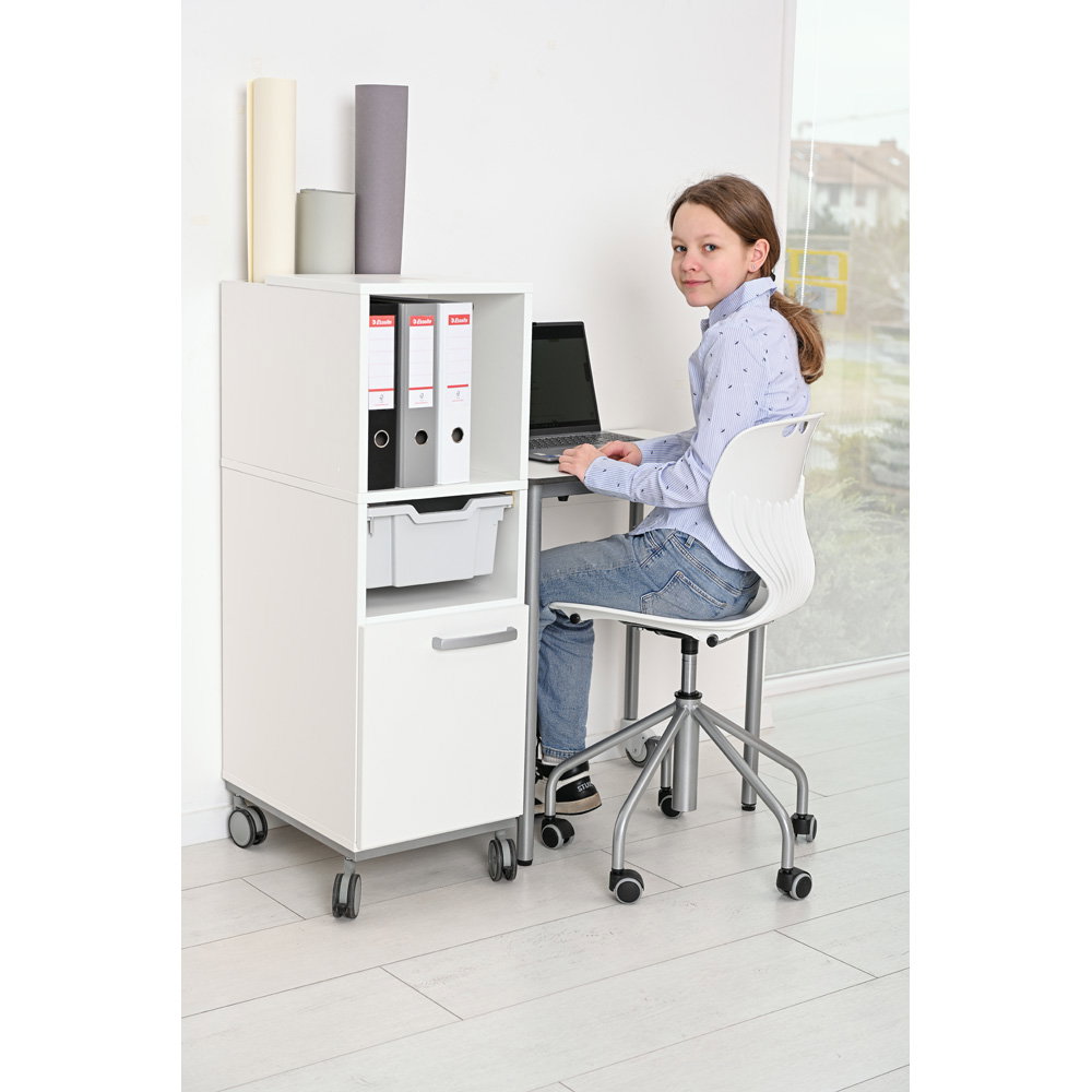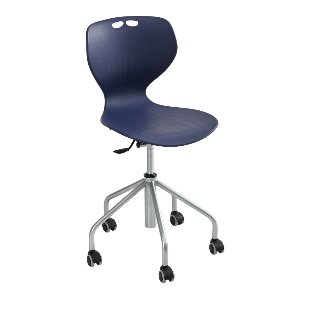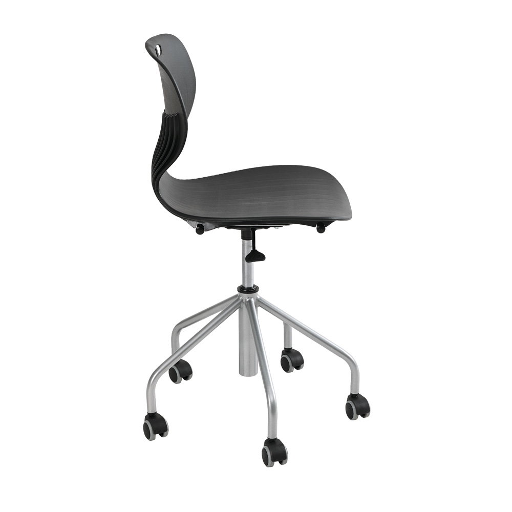 Gruppenarbeiten und wechselnde Unterrichtsformen verlangen nach flexiblen Raumkonzepten. Das stabile, alufarbene Metallgestell ist mit einem großzügigen Fußkreuz (Durchmesser 59 cm) und fünf leichtgängigen Rollen ausgestattet. Diese sorgen nicht nur für die nötige Mobilität im Raum, sondern garantieren auch eine unübertroffene Kippsicherheit und einen festen Stand an jedem Arbeitsplatz. - Robuste und extrem pflegeleichte Materialien