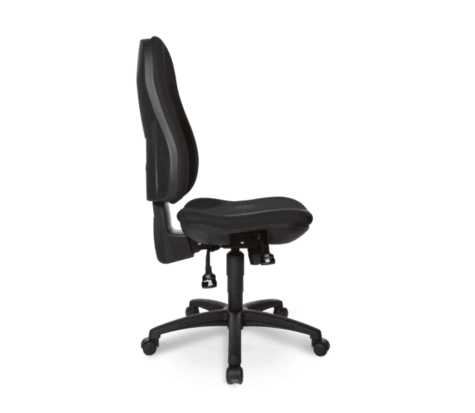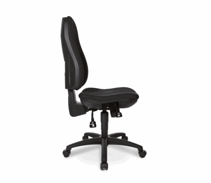 - Ergonomische Rückenlehne: Die höhenverstellbare Rückenlehne ist mit einer speziellen Wirbelsäulenausformung ausgestattet, die eine optimale Unterstützung bietet und Rückenschmerzen vorbeugt. Zusammen mit dem Bandscheibensitz, der gezielt im Beckenbereich abstützt, sorgt der Drehstuhl für ein angenehmes Sitzgefühl, auch während langer Sitzperioden.