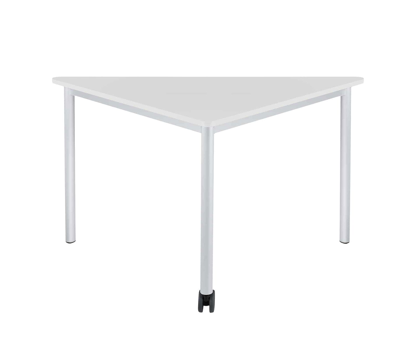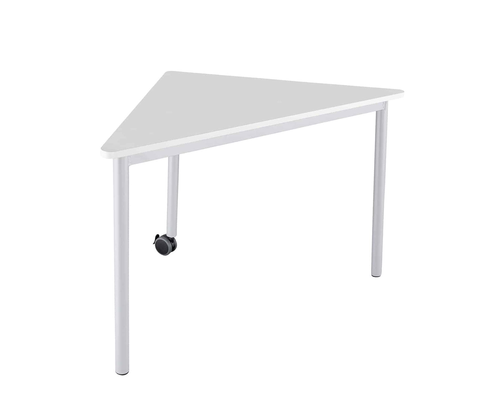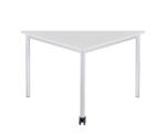 Das Untergestell des Dreieckstisch ist sicher verschweißt und hat 40 mm Rundrohrbeine mit einem Feststellrad. Die Tischplatte ist mit Melamin beschichtet und mit einer ABS-Kante versehen. Es gibt ihn in verschiedenen Dekoren und mit den Maßen 113 x 80 x 80 cm sowie in verschiedenen Tischhöhen von 52 cm, 58 cm, 64 cm, 70 cm, 76 cm oder 82 cm.