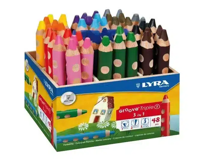 Bringen Sie Farbe und Fantasie in den Alltag Ihrer kleinen Künstler mit der DreifachEins Schulbox 48 Stück von LYRA! Diese innovative Schulbox vereint Aquarellstift, Buntstift und Wachsmalkreide in einem einzigen, praktischen Stift. Ideal für den Einsatz im Kindergarten, in der Schule oder zu Hause, bietet diese Box alles, was kreative Kinder für ihre Malerlebnisse benötigen.