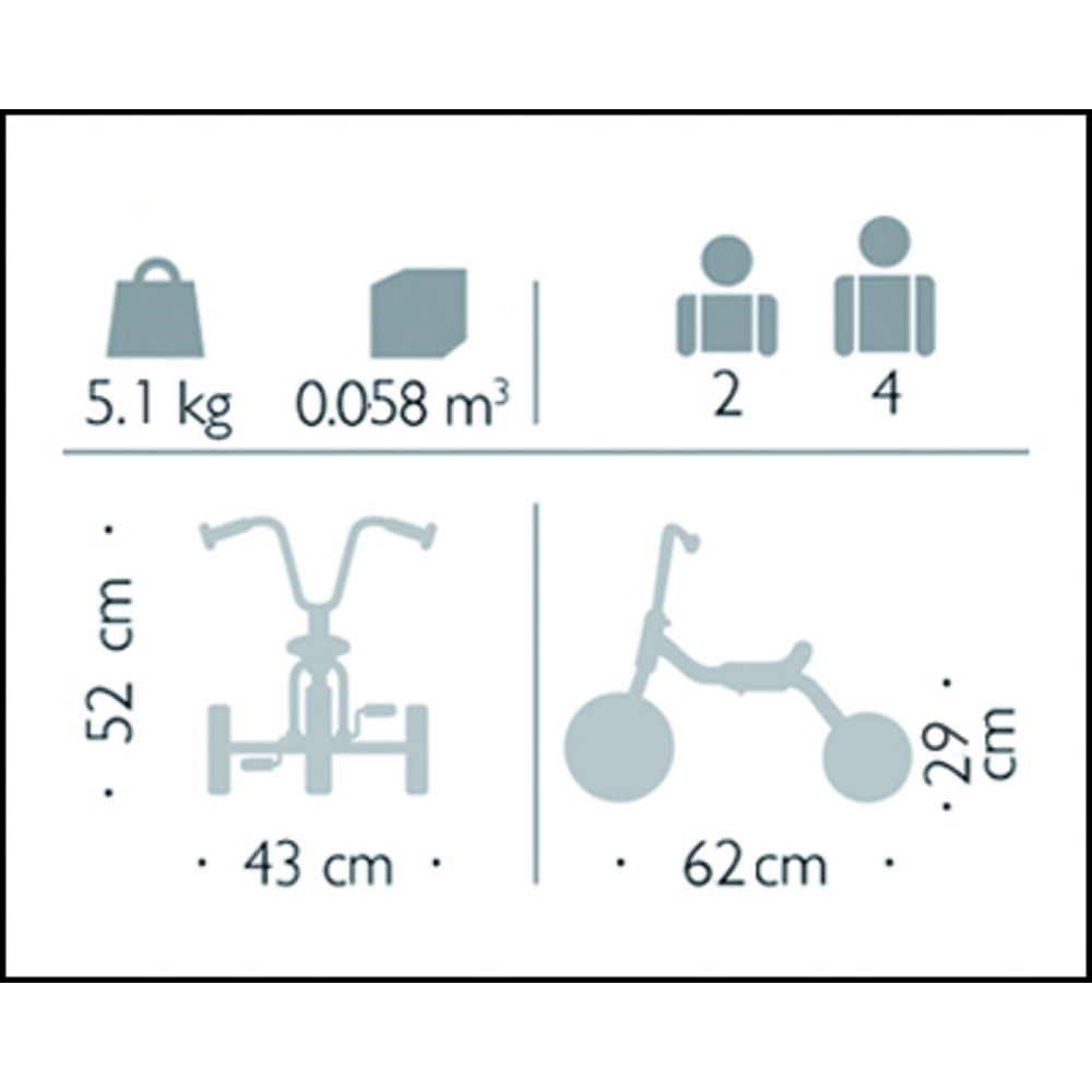 - Ausstattung: Verstellbarer Sitz (2 Positionen), rutschfeste Pedale