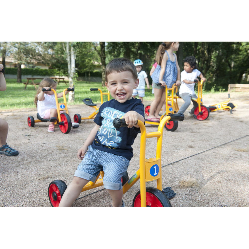 Das Dreirad „Endurance“ wurde kompromisslos auf Haltbarkeit und Sicherheit ausgelegt, um den Bedürfnissen von Kindern und den Anforderungen von Betreuungseinrichtungen gerecht zu werden.