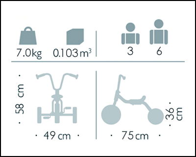 Hier finden Sie alle wichtigen Spezifikationen und Eigenschaften des Dreirads „Endurance“ (3–6 Jahre) kompakt und übersichtlich zusammengefasst.