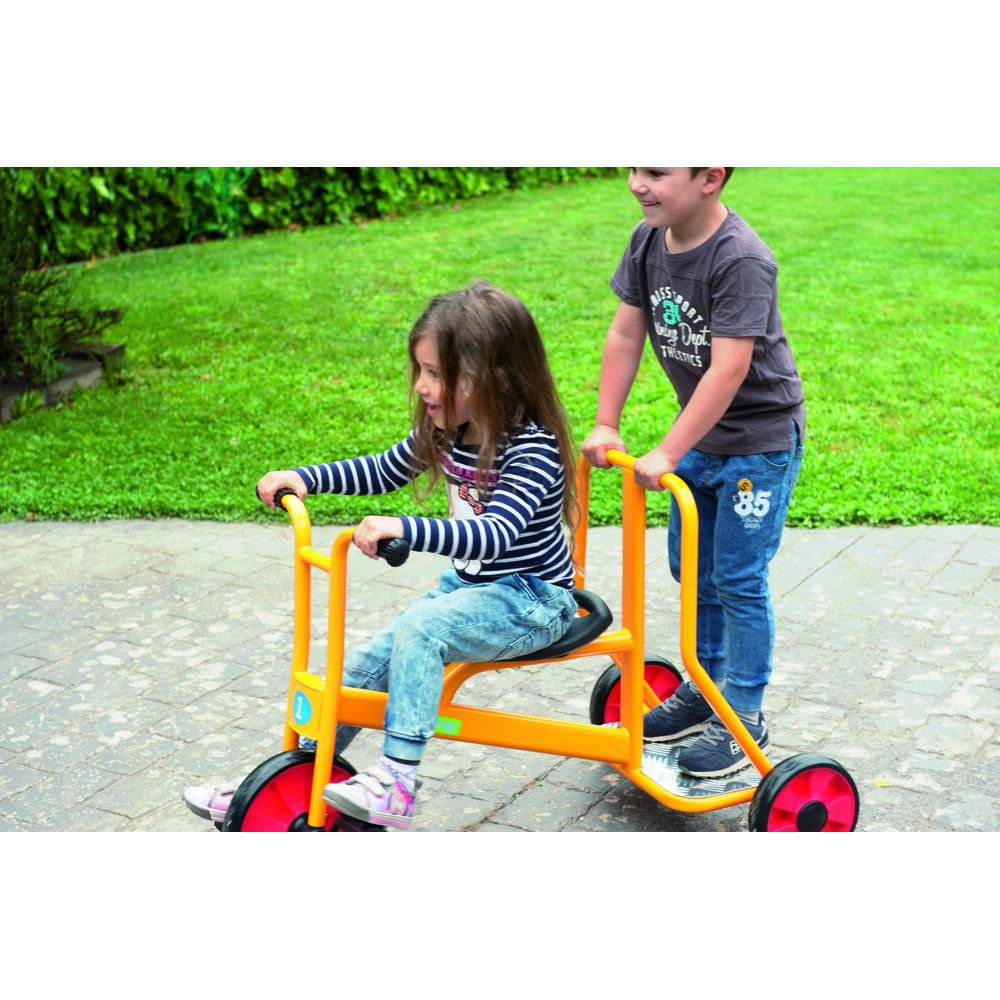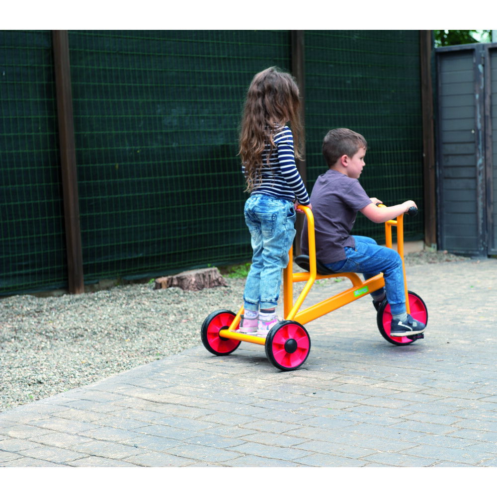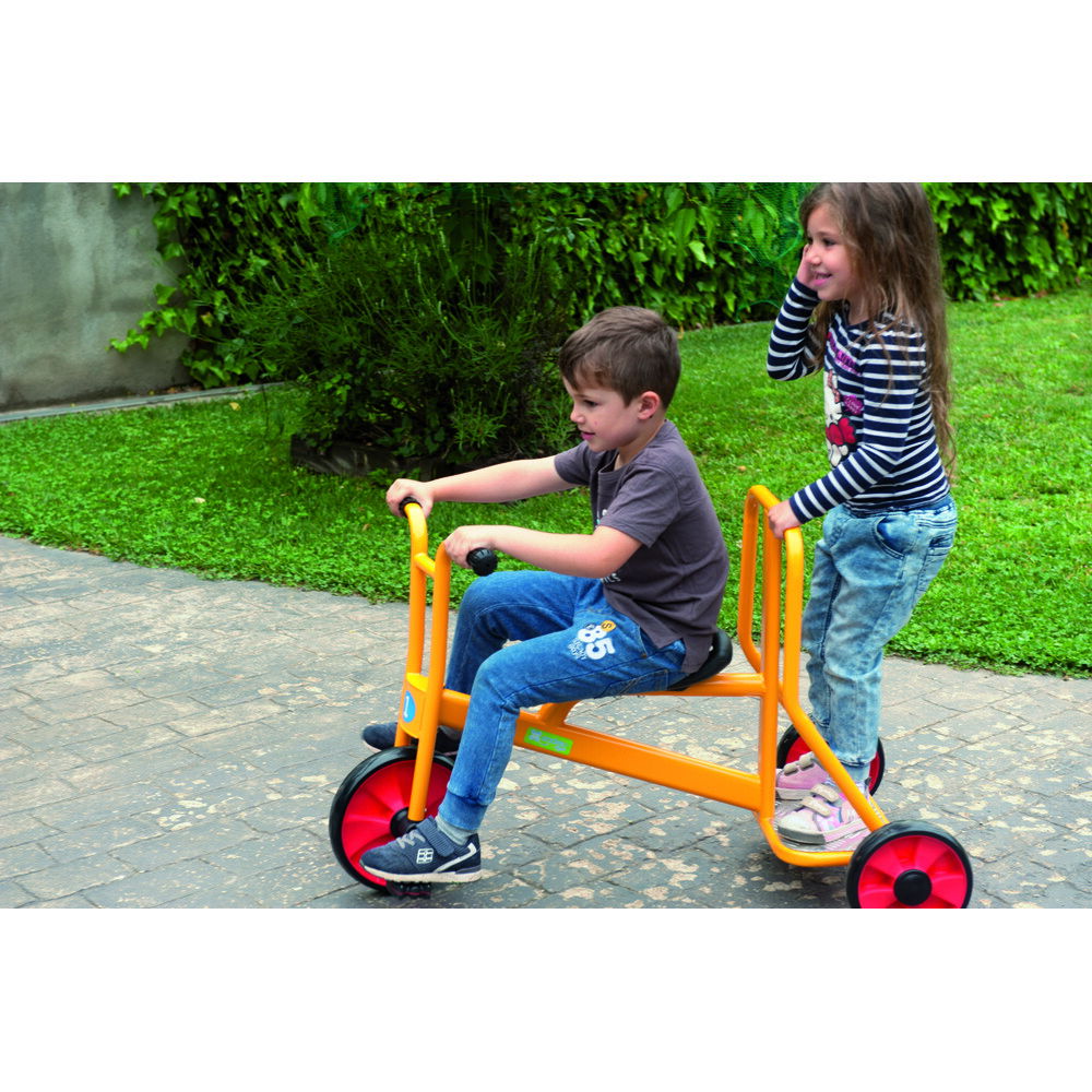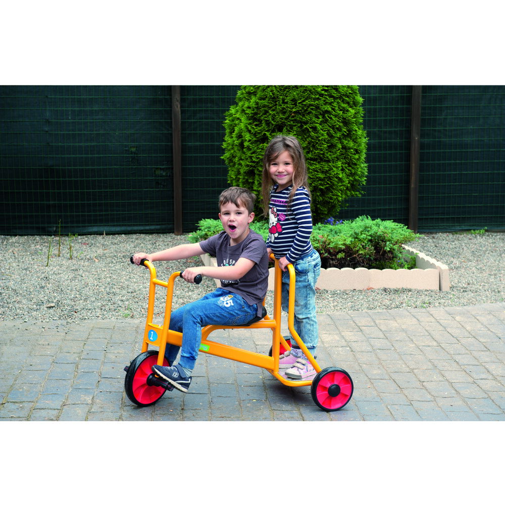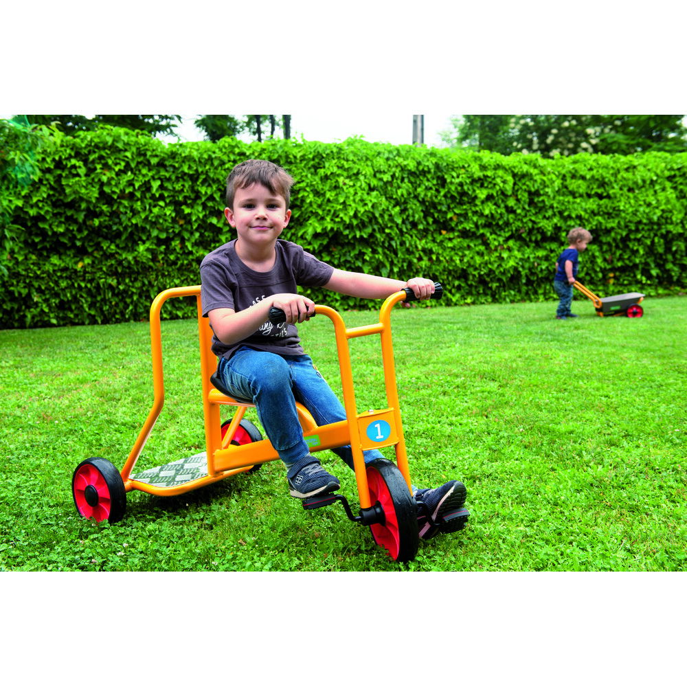 Dieses spezielle Dreirad verbindet Fahrspaß mit wertvollen pädagogischen Aspekten und überzeugt durch seine extrem widerstandsfähige Bauweise.