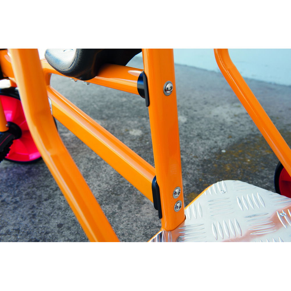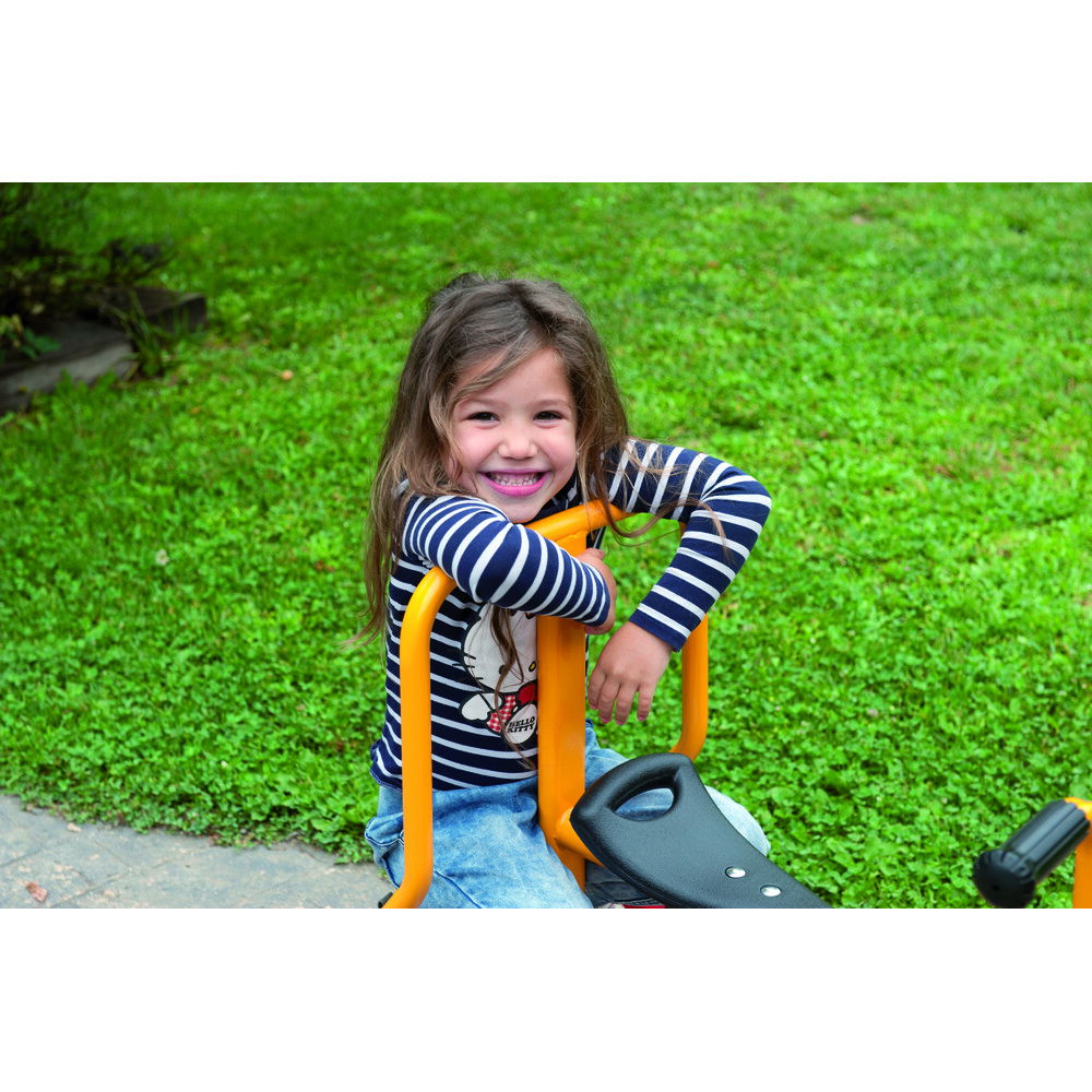 Damit der Fahrer die nötige Kraft auf die Pedale bringen kann, ist eine optimale Sitzposition entscheidend. Der Sitz lässt sich in zwei Positionen verstellen und passt sich so der Beinlänge des Kindes an. Das sorgt für eine gesunde Haltung und ermüdungsfreies Fahren. - Extrem langlebige „Heavy Duty“-Konstruktion