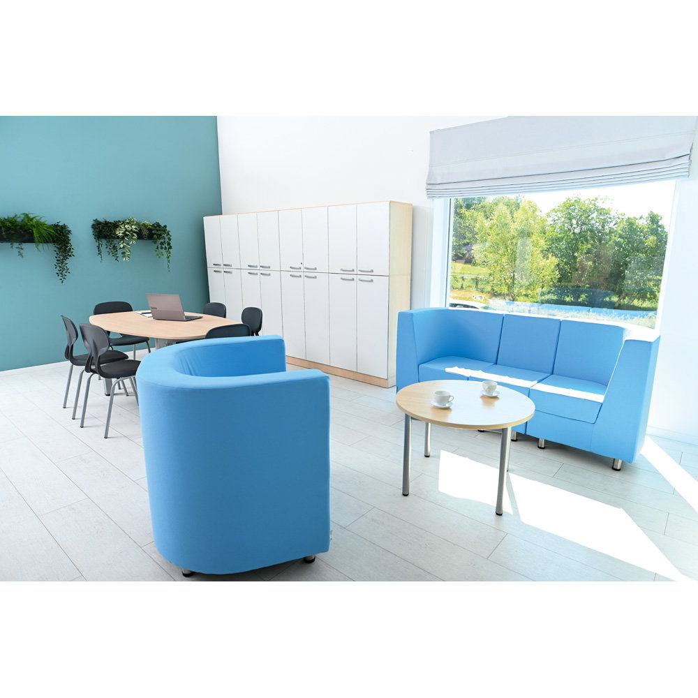 Neben dem exzellenten Sitzkomfort steht die Sicherheit im Mittelpunkt. Das Dreisitzer Sofa Verba ist mit einem äußerst strapazierfähigen Polyester-FR-Textil bezogen. Dieses Material ist schwer entflammbar und erfüllt damit wichtige Vorgaben für öffentliche Gebäude und gewerbliche Einrichtungen. Um sich nahtlos in Ihr bestehendes Raumkonzept einzufügen, ist das Sofa in den ansprechenden Farbvarianten Hellblau, Türkis und Grau erhältlich. Mit einer Breite von 187,5 Zentimetern fügt es sich harmonisch in große wie kleine Räume ein und wertet diese nachhaltig auf.