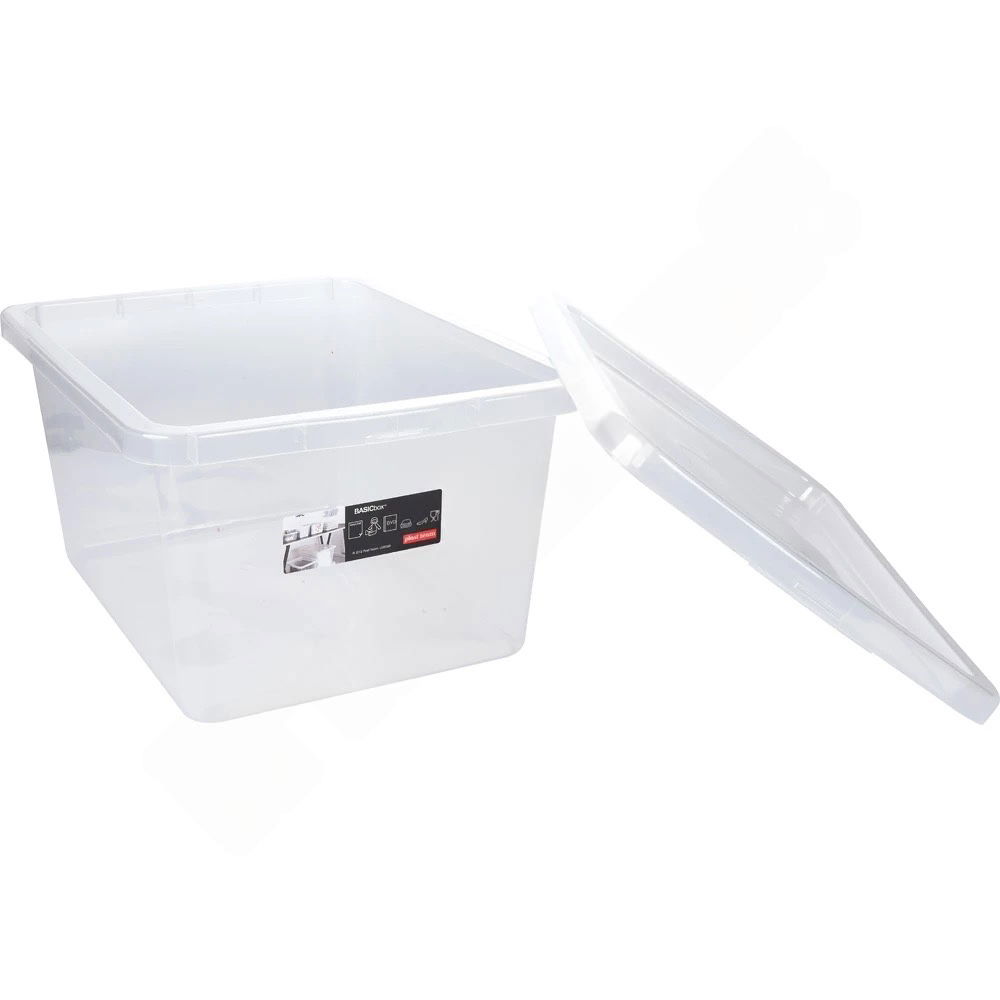 Robuster, durchsichtiger Behälter (20 l) mit Deckel. Ideal für sichtbare Ordnung von Kleidung, Spielzeug & Akten. Stapelbar. Maße: 43 x 33 x 21,6 cm.
