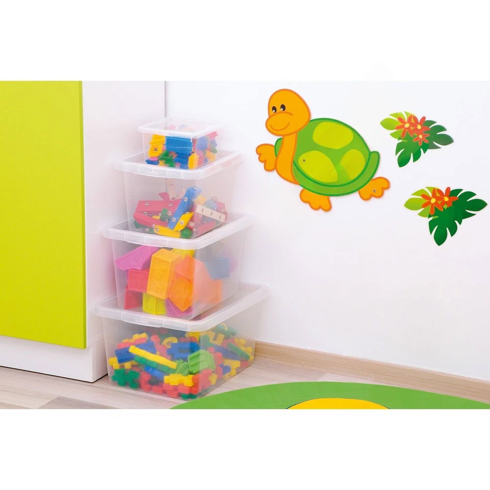 Mit seinem klaren, funktionalen Design fügt sich dieser Behälter nahtlos in jede Umgebung ein – sei es im Regal im Kinderzimmer, im Vorratsschrank oder in der Werkstatt. Das Volumen von 20 Litern ist perfekt dimensioniert: Groß genug, um auch sperrigere Gegenstände aufzunehmen, aber kompakt genug, um handlich und flexibel zu bleiben. Die stabile Konstruktion inklusive passgenauem Deckel sorgt dafür, dass Ihr Hab und Gut geschützt lagert, während Sie dank der transparenten Wände jederzeit den vollen Überblick behalten.