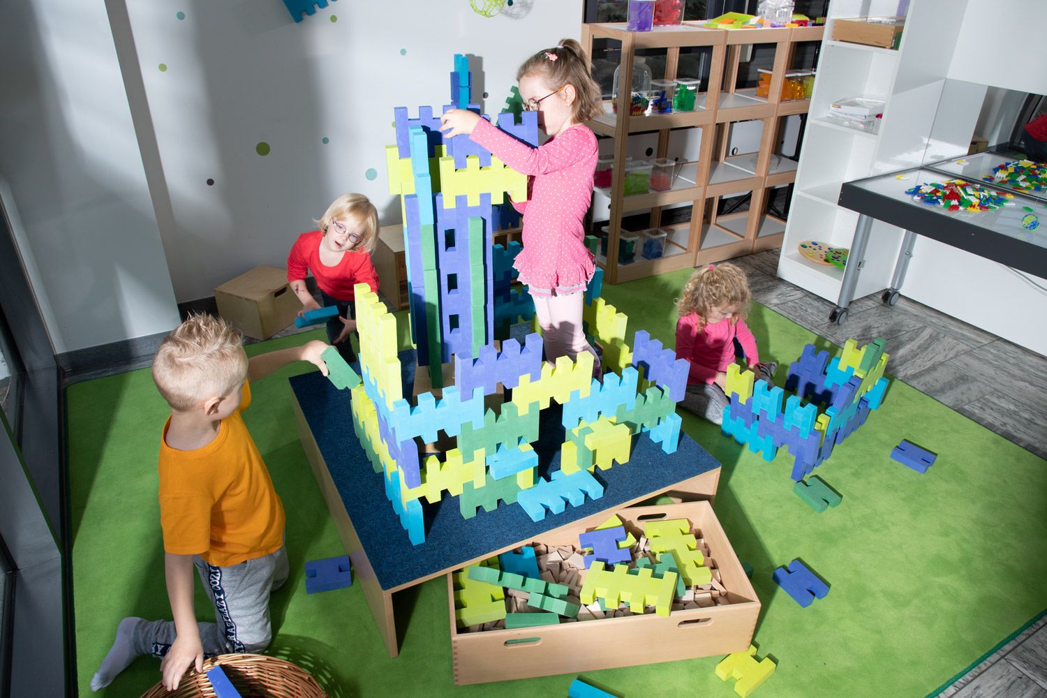 - Leicht zu reinigen: Die Oberfläche der Bausteine ist abwischbar, was die Pflege und Hygiene in der Kita erleichtert. Das bedeutet weniger Aufwand für Erzieher und mehr Zeit für kreative Aktivitäten.