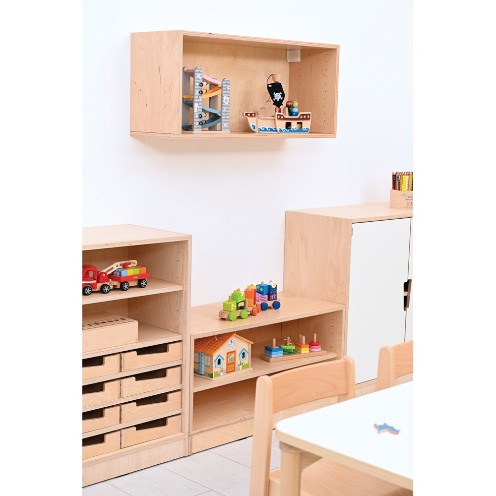 Einladende Räume leben von einer warmen Atmosphäre und einer klaren Struktur. Das offene Echtholz Hängeregal S bringt genau diese Qualitäten an Ihre Wand. Wenn der Platz auf dem Boden knapp wird, bieten Hängeschränke eine intelligente Möglichkeit, wertvollen Stauraum zu schaffen, ohne den Raum optisch zu erdrücken. Dieses kompakte Möbelstück verbindet ein zeitloses, offenes Design mit der unvergleichlichen Ausstrahlung echter Naturmaterialien. Es fügt sich nahtlos in Betreuungsräume, Büros oder private Wohnbereiche ein und bietet eine stilvolle Bühne für Bücher, Arbeitsmaterialien oder dekorative Elemente.