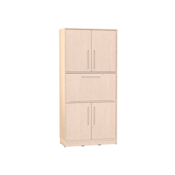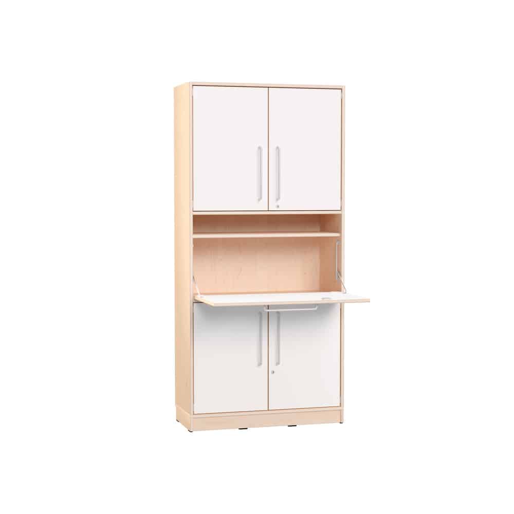 Echtholz Hochschrank mit Sekretär – Stilvoller Arbeitsplatz auf 192 cm: Der Echtholz Hochschrank mit Sekretär ist die ideale Lösung für gut organisierte Arbeits- und Lernbereiche in Kindergärten, Schulen und Büros. Durch die Kombination von Stauraum und einer integrierten Arbeitsplatte vereint dieser Hochschrank Funktionalität und natürlichen Stil.