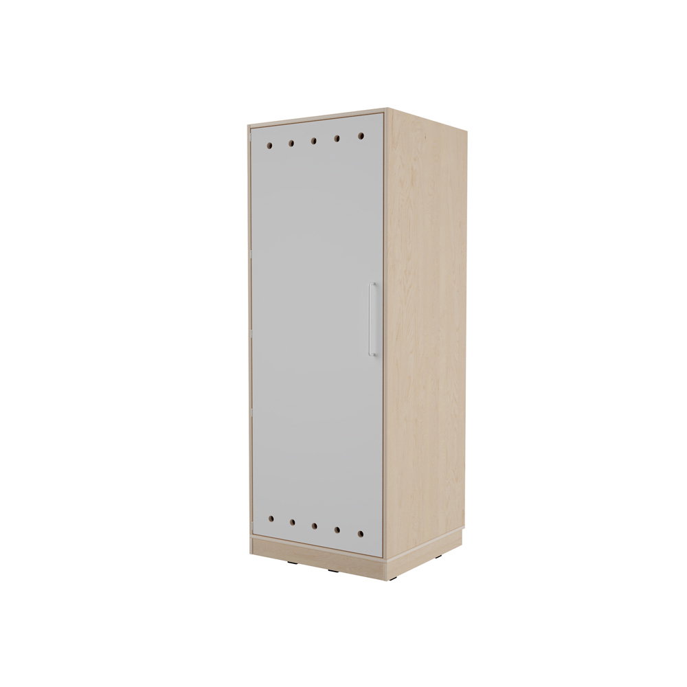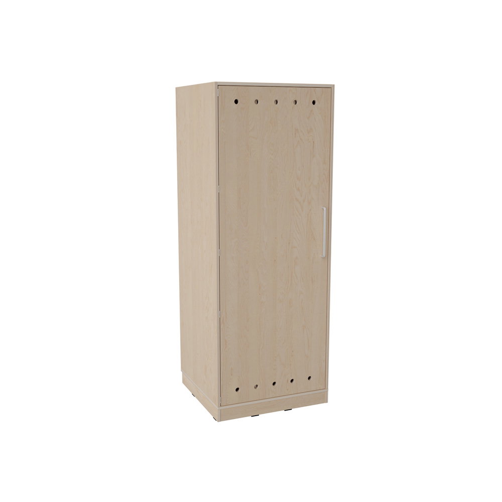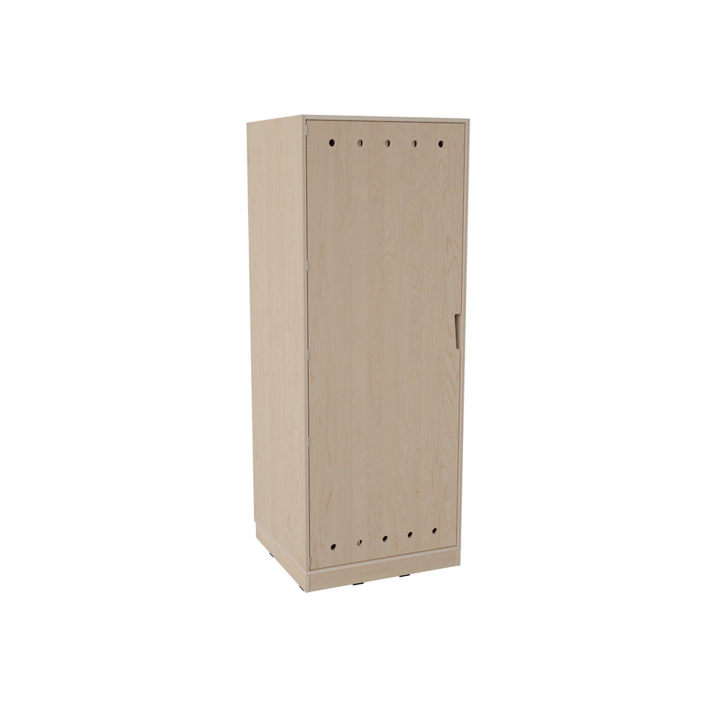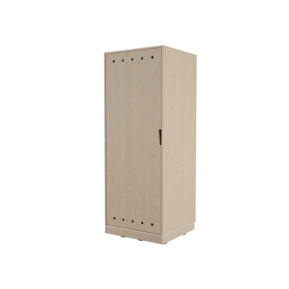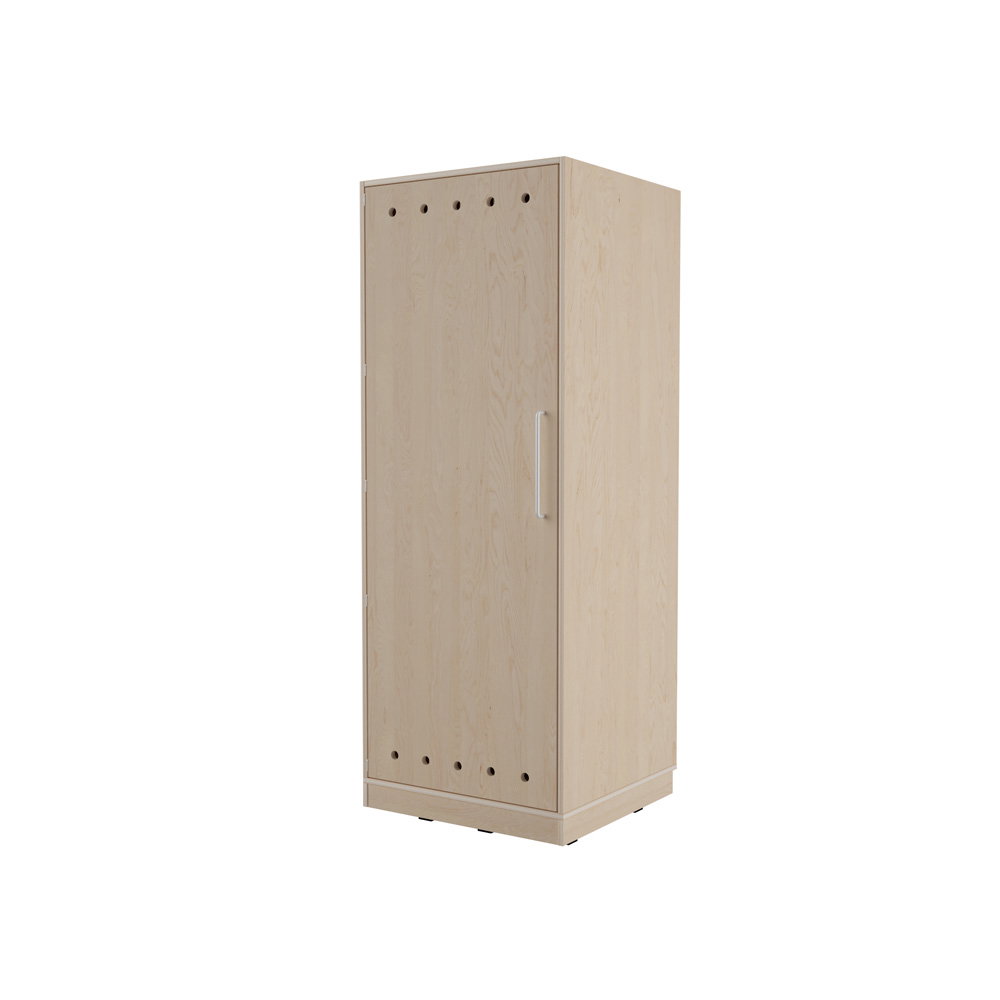 Der kompakte Echtholz Kombischrank für 4 Matten und Decken. Aus robustem Multiplex-Holz mit belüfteter Tür für maximale Hygiene in Ihrem Ruheraum.
