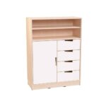 Mit verschiedenen Farb- und Griffoptionen lässt sich der Schrank individuell gestalten. Ob im Wohnzimmer, Büro oder Kinderzimmer – dieser Kombischrank bietet nicht nur praktischen Stauraum, sondern auch eine ästhetische Aufwertung Ihrer Räumlichkeiten.