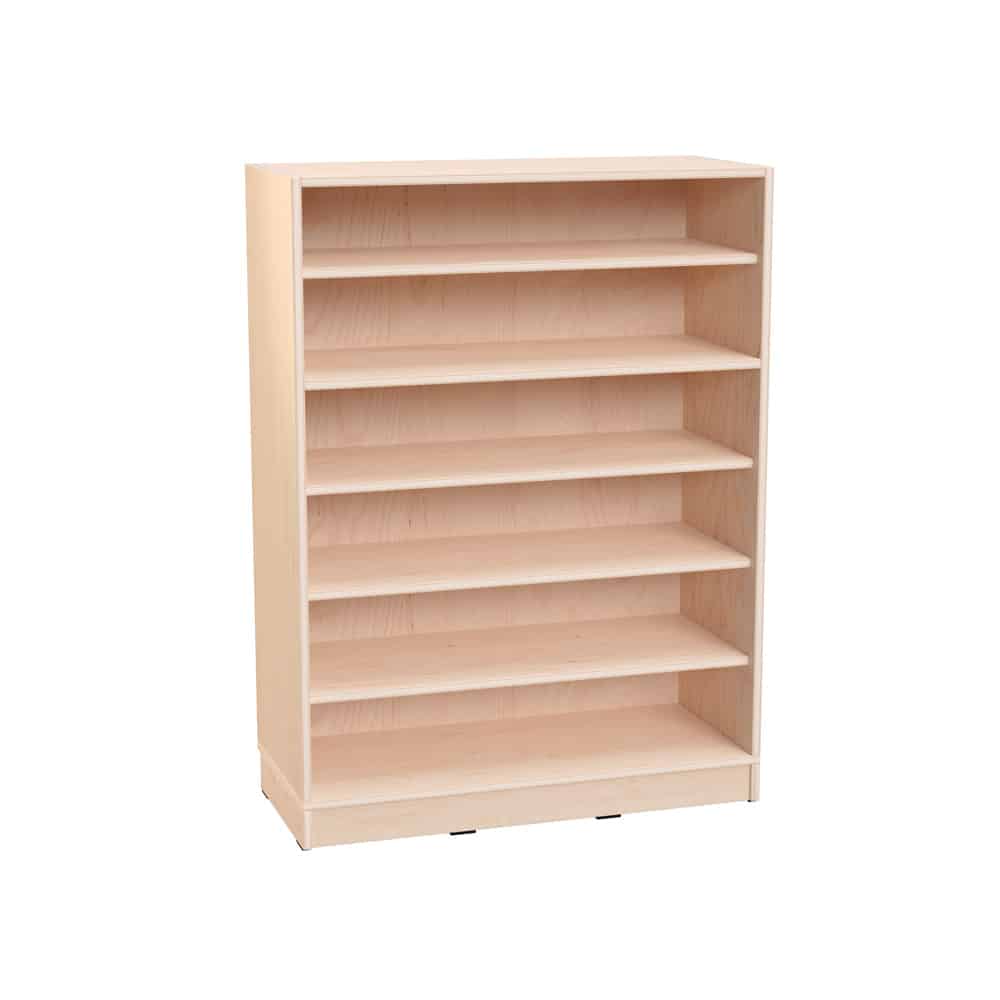Das Echtholz Regal L mit 5 verstellbaren Einlegeböden bietet eine stilvolle und flexible Aufbewahrungslösung für Kindergärten, Schulen und Büros. Gefertigt aus robustem Echtholzfurnier, überzeugt dieses Möbelstück mit natürlicher Eleganz und hoher Funktionalität.