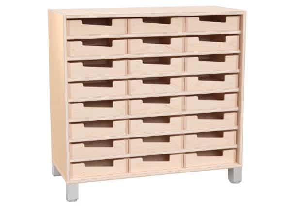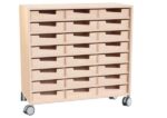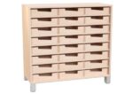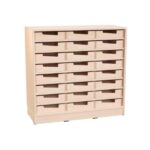 Das Echtholz Regal M mit 24 praktischen Holzkästen bietet eine hervorragend durchdachte Aufbewahrungslösung für Kindergärten, Schulen und Büros. Gefertigt aus edlem Echtholzfurnier, vereint dieses Regal Stabilität und natürliche Eleganz.