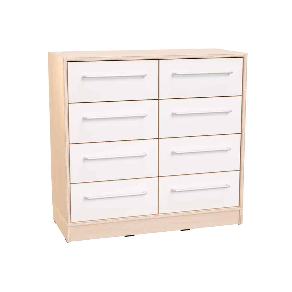 Der Echtholz Schubladenschrank M bietet vielseitige Aufbewahrungsmöglichkeiten und eine zeitlose Eleganz, die in jedem Raum beeindruckt. Mit seinen 8 geräumigen Schubladen bietet dieser Schrank reichlich Platz für all Ihre Gegenstände.