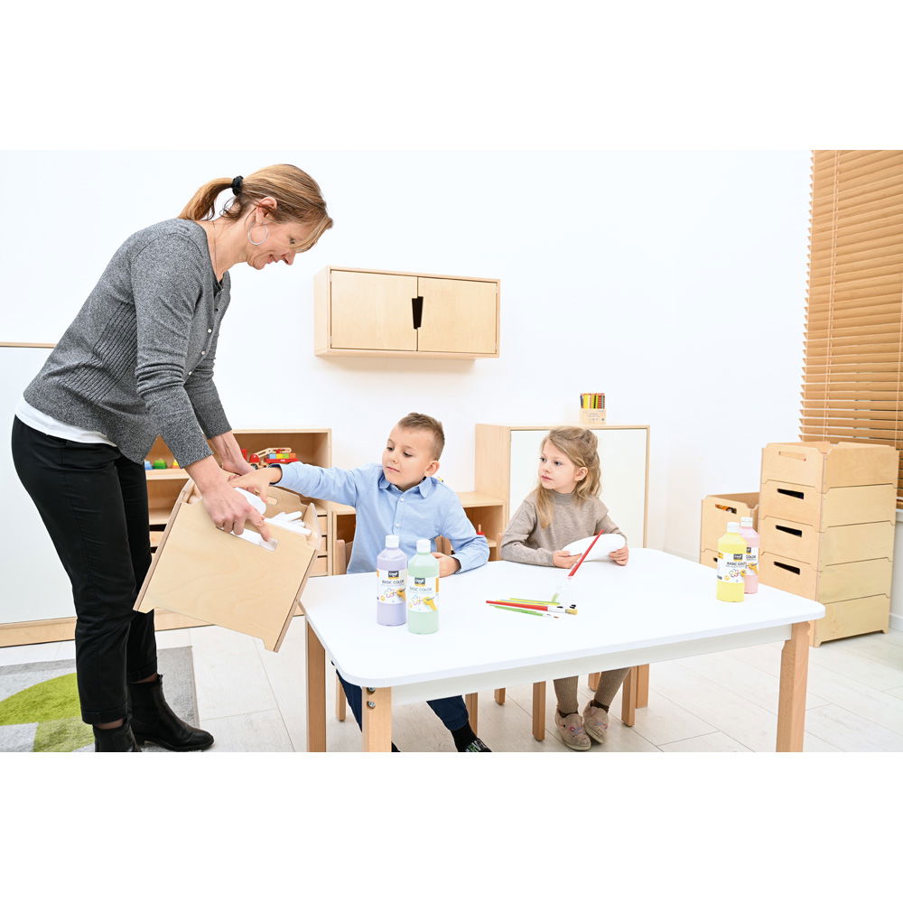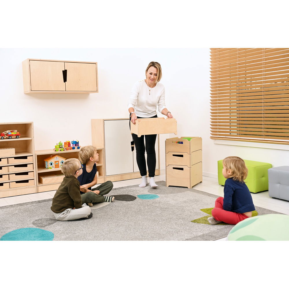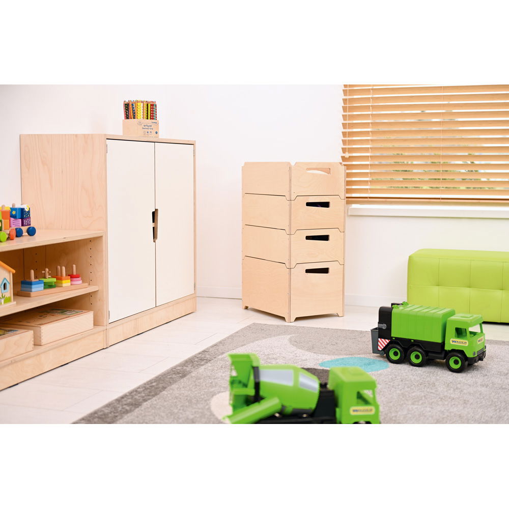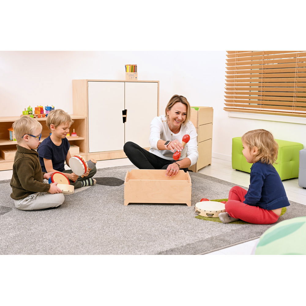 Vom Kinderzimmer über das Wohnzimmer bis hin zum Büro oder der Werkstatt – diese Box ist ein wahres Multitalent. Sie kommt bereits vormontiert bei Ihnen an und ist sofort bereit, Spielzeug, Bücher, Sportzubehör oder Büromaterial aufzunehmen. Die praktischen Griffaussparungen machen den Transport von einem Raum zum anderen kinderleicht.