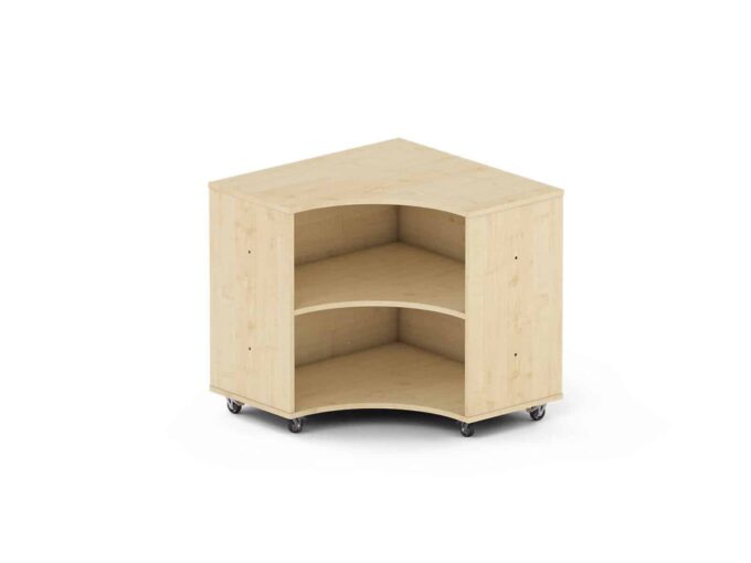 Schaffen Sie flexible Zonen mit dem Nova Raumteiler Eckregal in Ahorn. Ideal für Kitas, um Räume zu strukturieren und Stauraum zu gewinnen. Mobil & stabil.