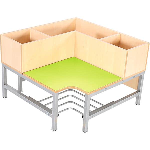 Eckbank mit Fächern Flexi 3 – Ahorn für Kindergärten in 5 Farben
