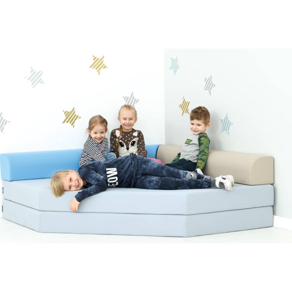 Verwandeln Sie jeden Raum in einen einladenden Spiel- und Ruhebereich mit unserer Eckmatte mit Lehne! Diese innovative Matte besteht aus zwei Fünfeckmatten, die übereinander gelegt eine bequeme Ecke mit Lehne bilden und nebeneinander eine große Fläche für Spiel, Spaß und Übungen. Perfekt für Kindergärten, Schulen oder Zuhause – die Matten passen zu unseren Spielecken (z.B. Art. Nr. 100931) oder schaffen einen komfortablen Ruhebereich.