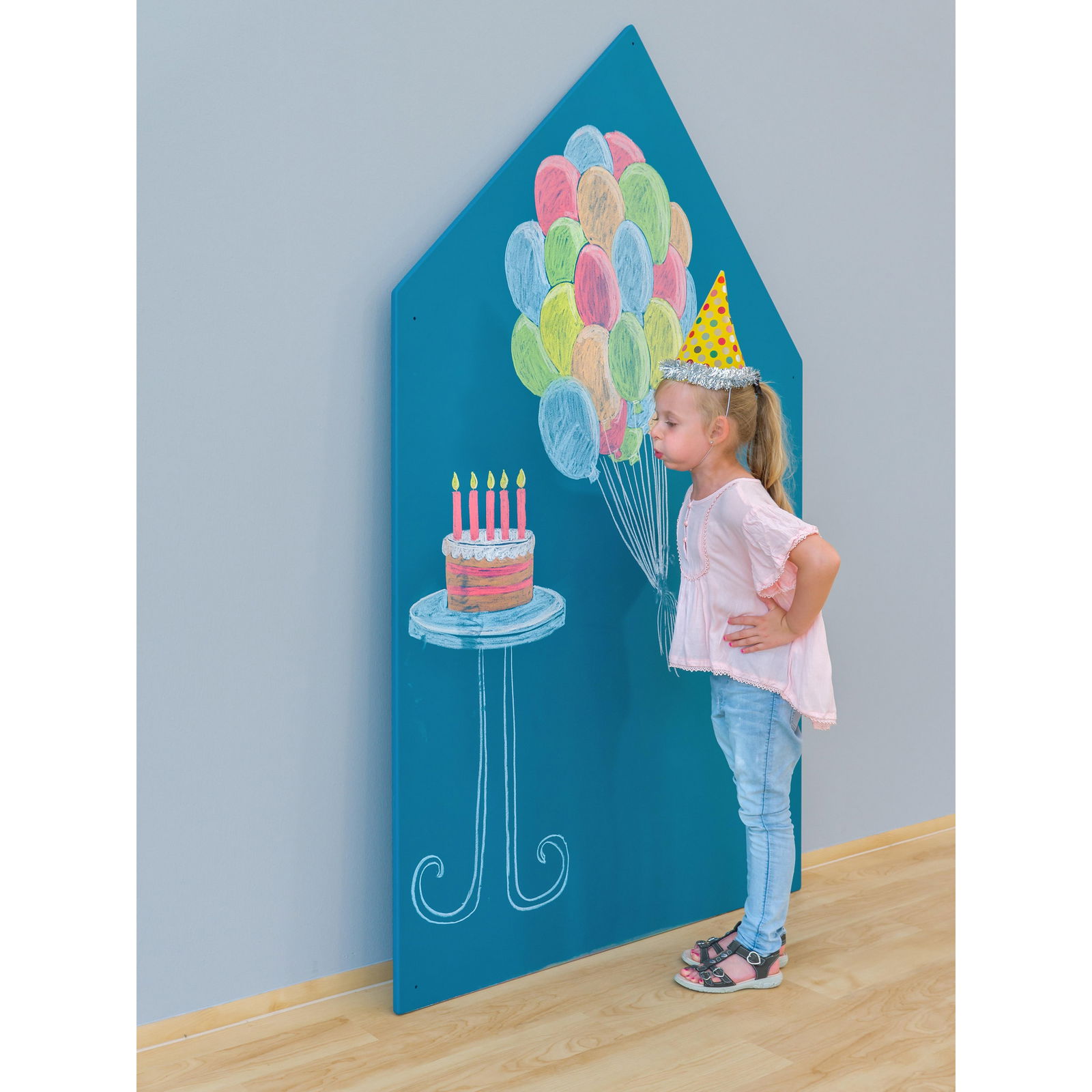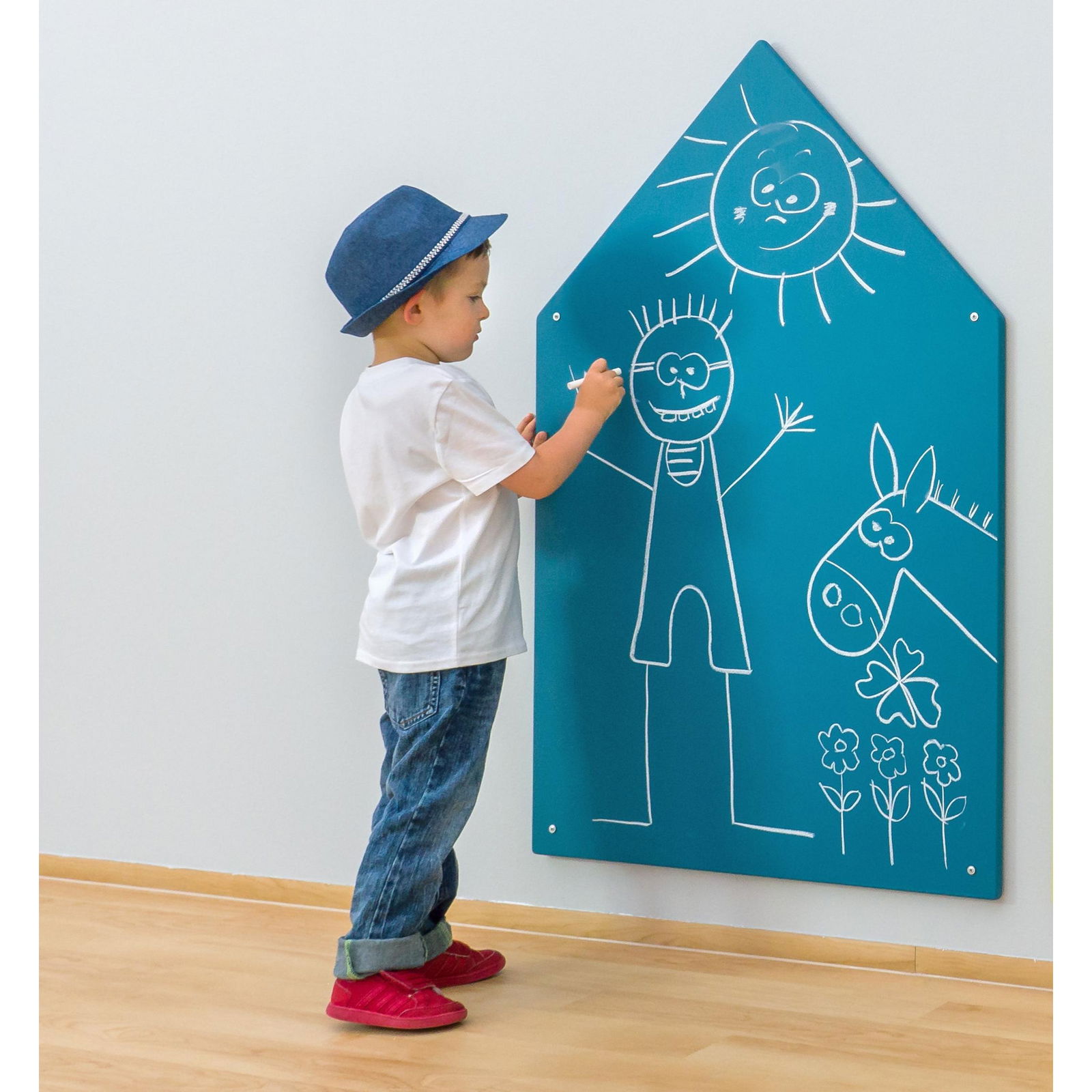 Die Wandtafel in Hausform ist eine durchdachte Investition in die kreative und motorische Entwicklung von Kindern und setzt gleichzeitig stilvolle Akzente.