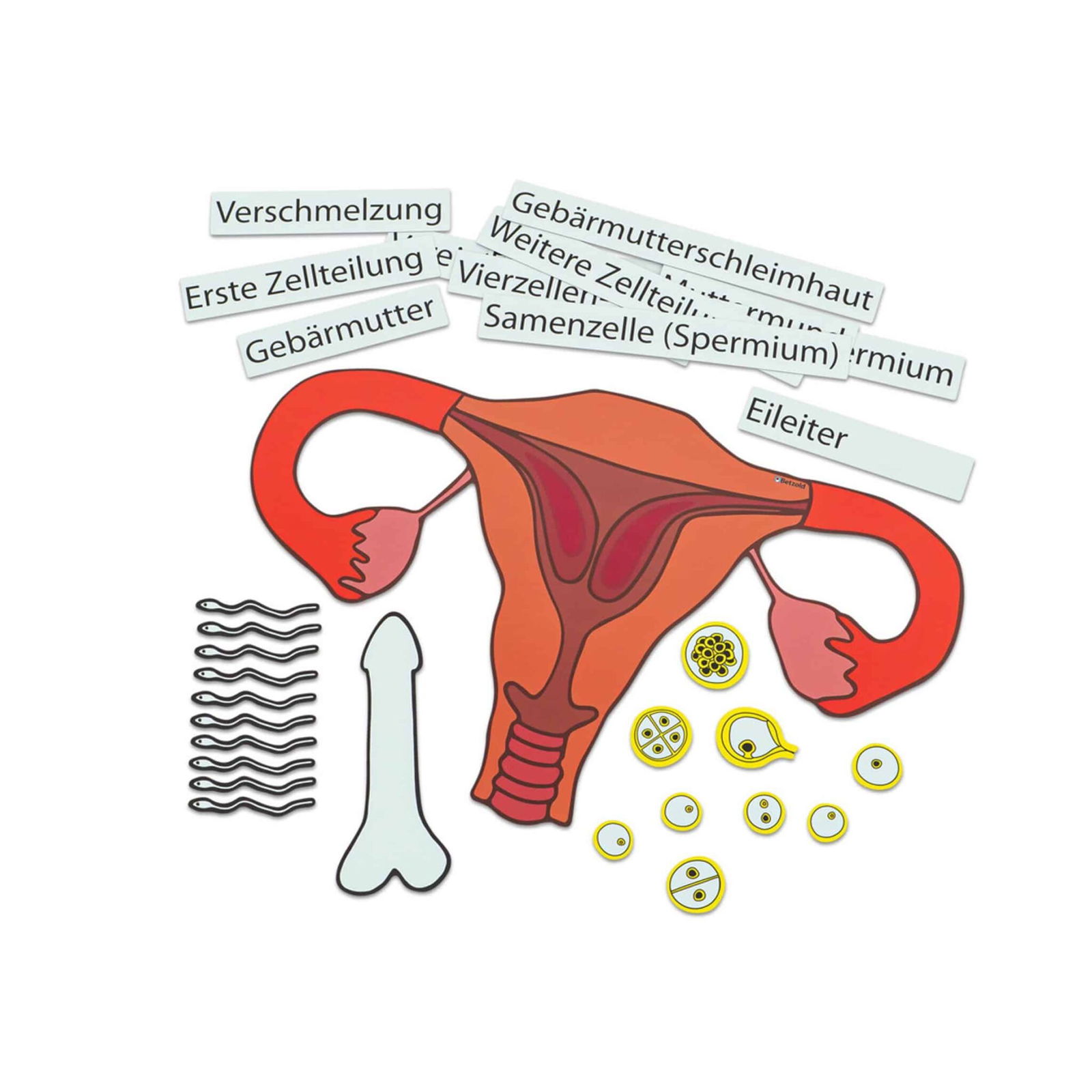 Mit 37 Teilen, darunter 21 Magnetbilder und 15 magnetische Namensschilder (in Deutsch und Englisch), können Sie anschaulich darstellen, wie menschliches Leben entsteht. Erklären Sie den Schülerinnen und Schülern Begriffe wie Eileiter, Eisprung, Befruchtung, Zellteilung, Einnistung und vieles mehr. Durch die klaren Darstellungen werden diese komplexen Konzepte greifbar und verständlich.