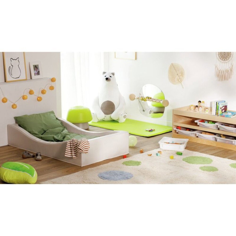 - Mühelose Hygiene: Die wasserabweisende und kunststoffbeschichtete Oberfläche lässt sich einfach mit einem feuchten Schwamm reinigen und sorgt stets für ein sauberes Spielumfeld.
