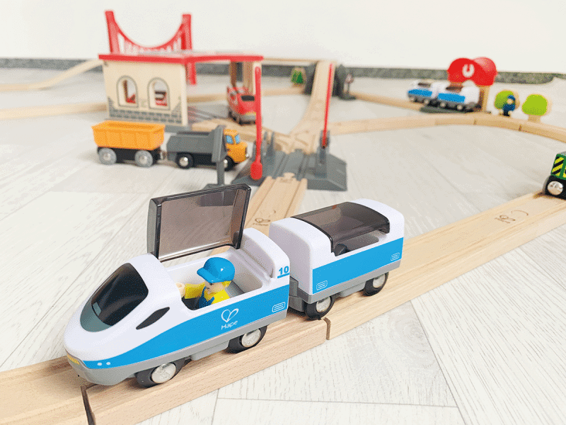 - Accessoires wie ein Bahnhof, verschiedene Züge und eine schließbare Bahnschranke sorgen für authentisches und abwechslungsreiches Spielvergnügen.