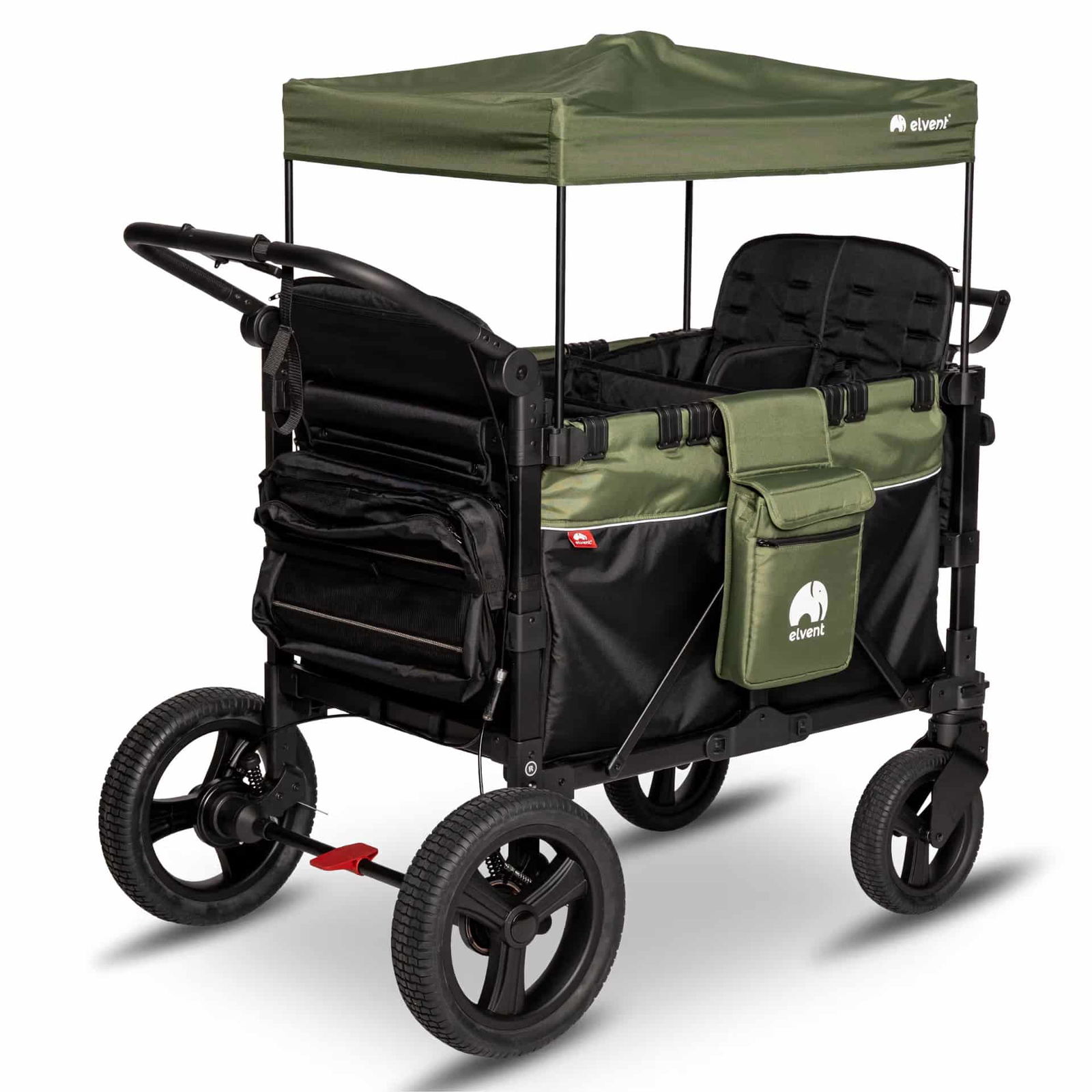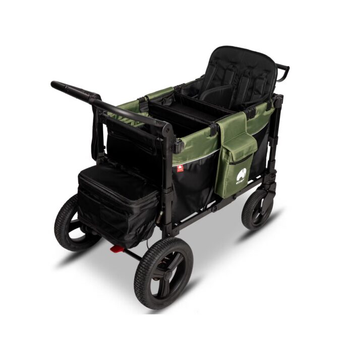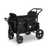 - Unübertroffener Fahrkomfort auf jedem Terrain: Egal ob Kopfsteinpflaster in der Stadt, Schotterwege im Park oder Wiesen – das gefederte Fahrwerk und die großen All-Terrain-Gummiräder sorgen für eine ruhige und sanfte Fahrt. Die schwenkbaren Vorderräder machen den Wagen extrem wendig, während sich die Kombination aus Schiebegriff und Teleskop-Zugstange jeder Körpergröße und Situation anpasst.