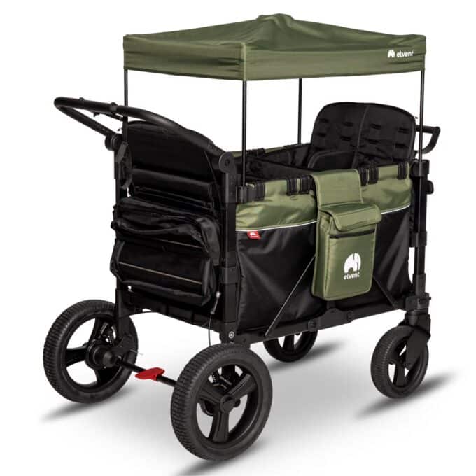 Entdecken Sie den Krippenwagen, der den Alltag in Kitas, bei Tageseltern und in Familien neu definiert. Der elvent FlexProfessional wurde von Grund auf für höchste Ansprüche an Sicherheit, Flexibilität und Komfort entwickelt. Ob für den Ausflug in den Park, den Weg zum Spielplatz oder den täglichen Spaziergang – dieser TÜV-zertifizierte Wagen kombiniert innovative Funktionen mit herausragender Robustheit. Mit seinem intelligenten Faltsystem, dem gefederten Fahrwerk und den durchdachten Stauraumlösungen ist er der perfekte, zuverlässige Partner, um mit bis zu vier Kindern sicher und entspannt unterwegs zu sein.