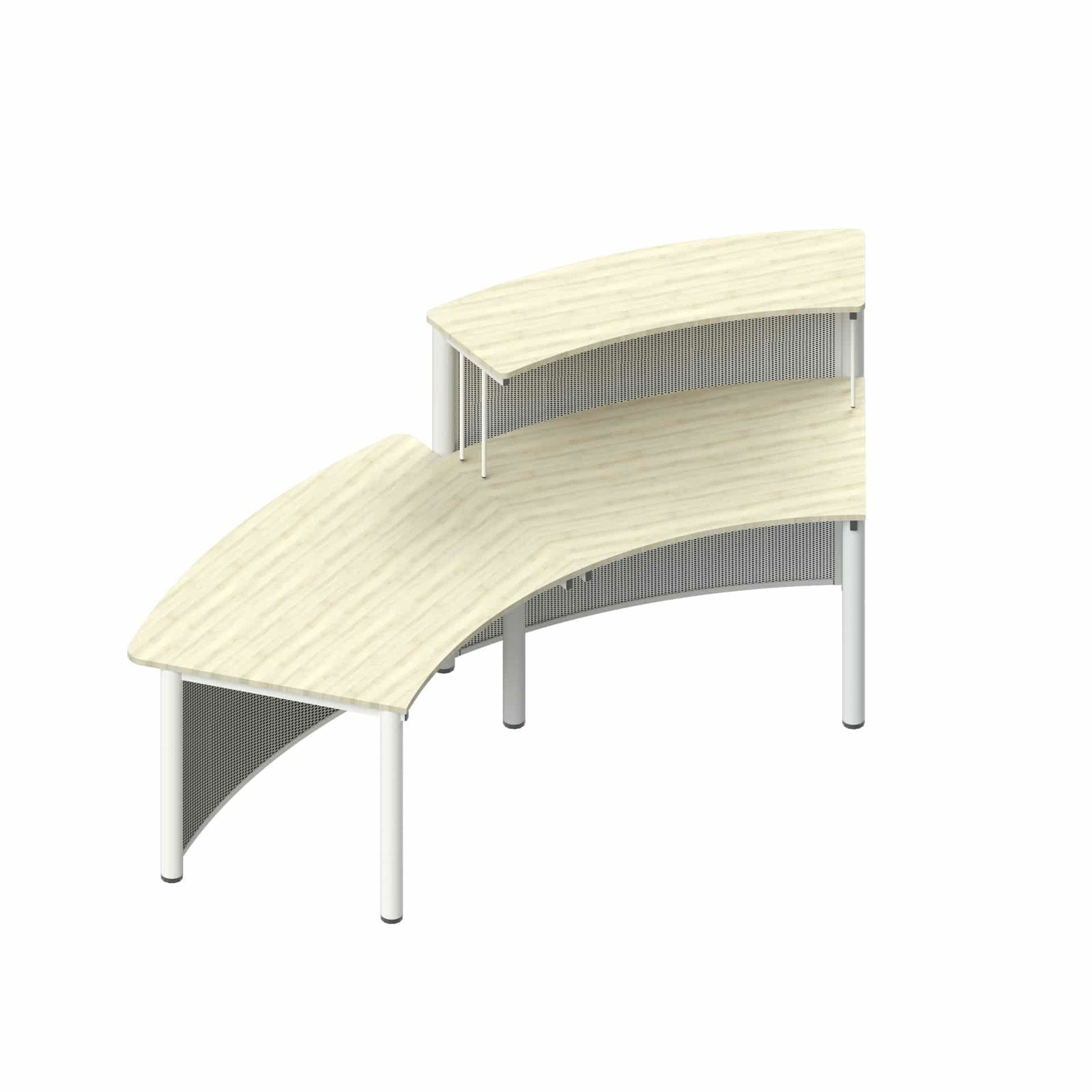 Erleben Sie professionelle Empfangsgestaltung auf höchstem Niveau mit der Empfangstheke Recknitz 2-2. Diese exklusive 2-teilige Thekenkonstruktion aus zwei harmonisch verbundenen 36°-Bögen definiert moderne Empfangsbereiche neu und verbindet dabei großzügige Arbeitsflächen mit durchdachter Funktionalität. Mit ihrem erweiterten Platzbedarf von 240 x 105 cm schafft diese Premium-Lösung einen beeindruckenden Empfangsbereich, der sowohl repräsentative Ausstrahlung als auch optimale Arbeitsbedingungen gewährleistet. Die robuste Stahlkonstruktion mit höhenverstellbarer Arbeitsplatte und individueller Gestaltungsfreiheit durch die magnethaftende Lochblech-Frontblende macht diese Theke zur ersten Wahl für Unternehmen, die keine Kompromisse bei Qualität und Professionalität eingehen möchten.