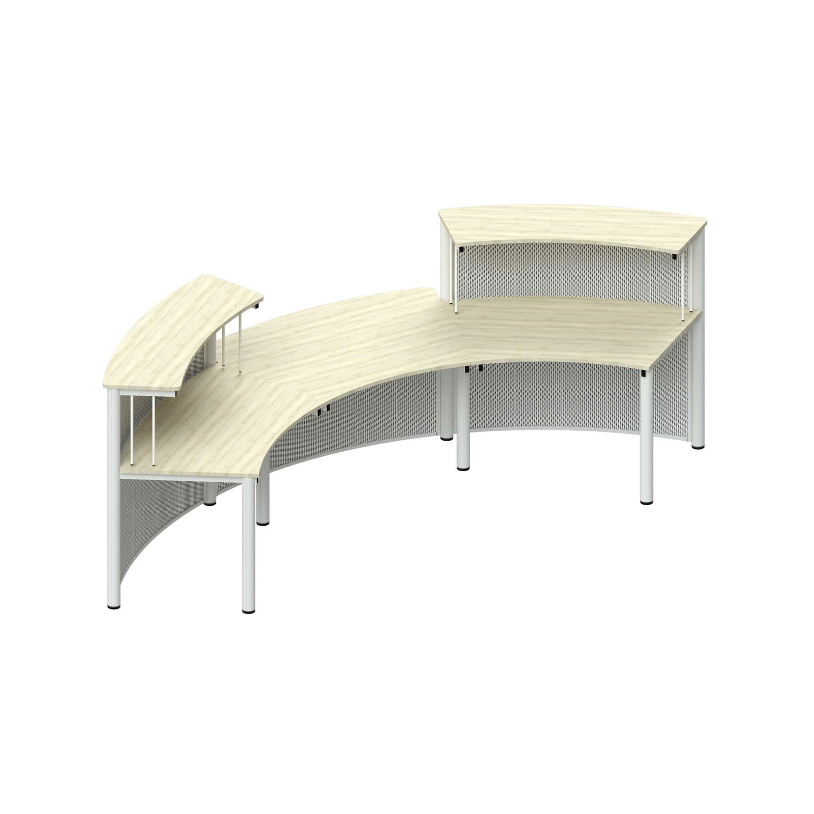 Erleben Sie Empfangsgestaltung auf höchstem Niveau mit der Empfangstheke Recknitz 3-1, der absoluten Premium-Lösung für anspruchsvollste Empfangsbereiche. Diese außergewöhnliche 3-teilige Thekenkonstruktion aus drei harmonisch verbundenen 36°-Bögen setzt mit ihrem erweiterten Platzbedarf von 325 x 134 cm neue Maßstäbe in der professionellen Empfangsgestaltung. Die zusätzliche Tiefe von 8 cm gegenüber der Standard-Version schafft maximale Bewegungsfreiheit und verwandelt jeden Empfangsbereich in ein repräsentatives Kommunikationszentrum der Extraklasse. Mit ihrer durchdachten Kombination aus höhenverstellbarer Arbeitsplatte, robuster Stahlkonstruktion und individueller Gestaltungsfreiheit ist diese Theke die erste Wahl für Großunternehmen, Hotels, Behörden und öffentliche Einrichtungen, die keine Kompromisse bei Qualität und Professionalität eingehen möchten.