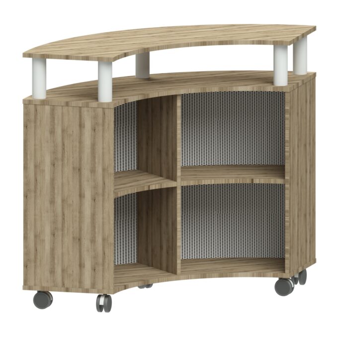- Fahrbare Konstruktion: Hochwertige Rollen ermöglichen es, den Tresen mühelos zu bewegen und an unterschiedliche Raumsituationen anzupassen – ideal für flexible Arbeitsplatzkonzepte.