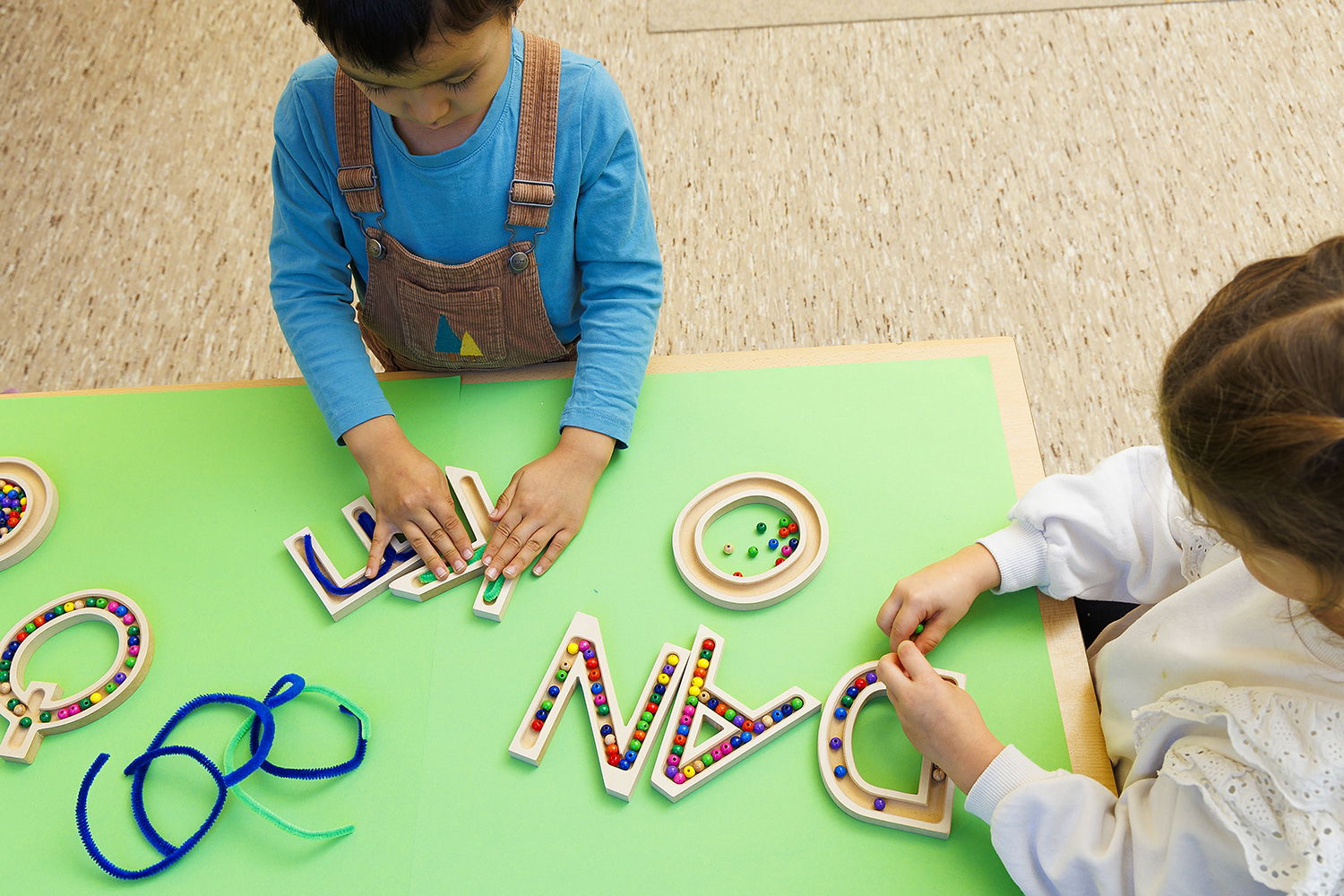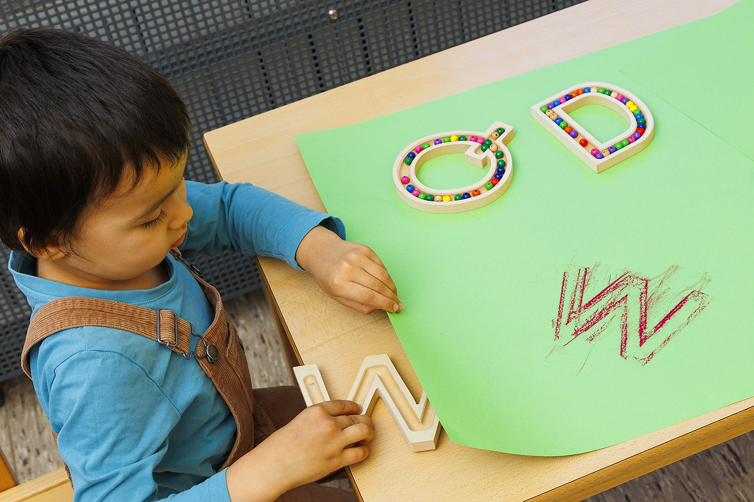 - Tasten und Fühlen: Kinder können die Buchstaben bewusst erfühlen und ihre Formen ertasten, wodurch Feinmotorik und Sinneswahrnehmung optimal gefördert werden.