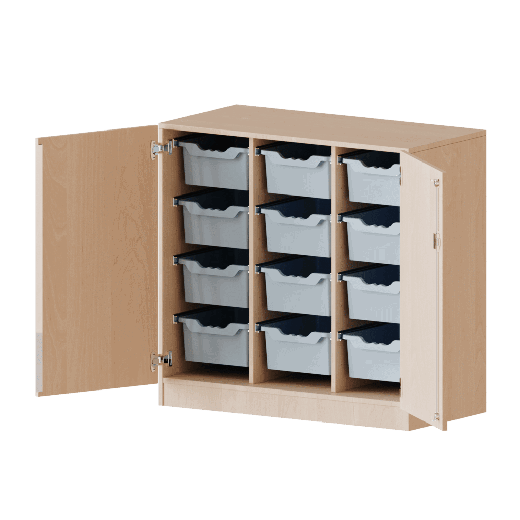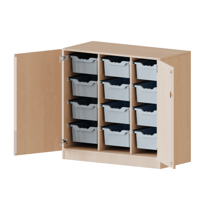 - 12 hohe Boxen für voluminöse Gegenstände: Dieses Lowboard ist vollständig für die Aufbewahrung großer und sperriger Objekte optimiert. Die 12 hohen ErgoTray-Boxen bieten eine konkurrenzlose Lösung für die systematische Unterbringung von Bausteinen, Puppen, Sportgeräten und anderen großen Spiel- oder Lernmaterialien.