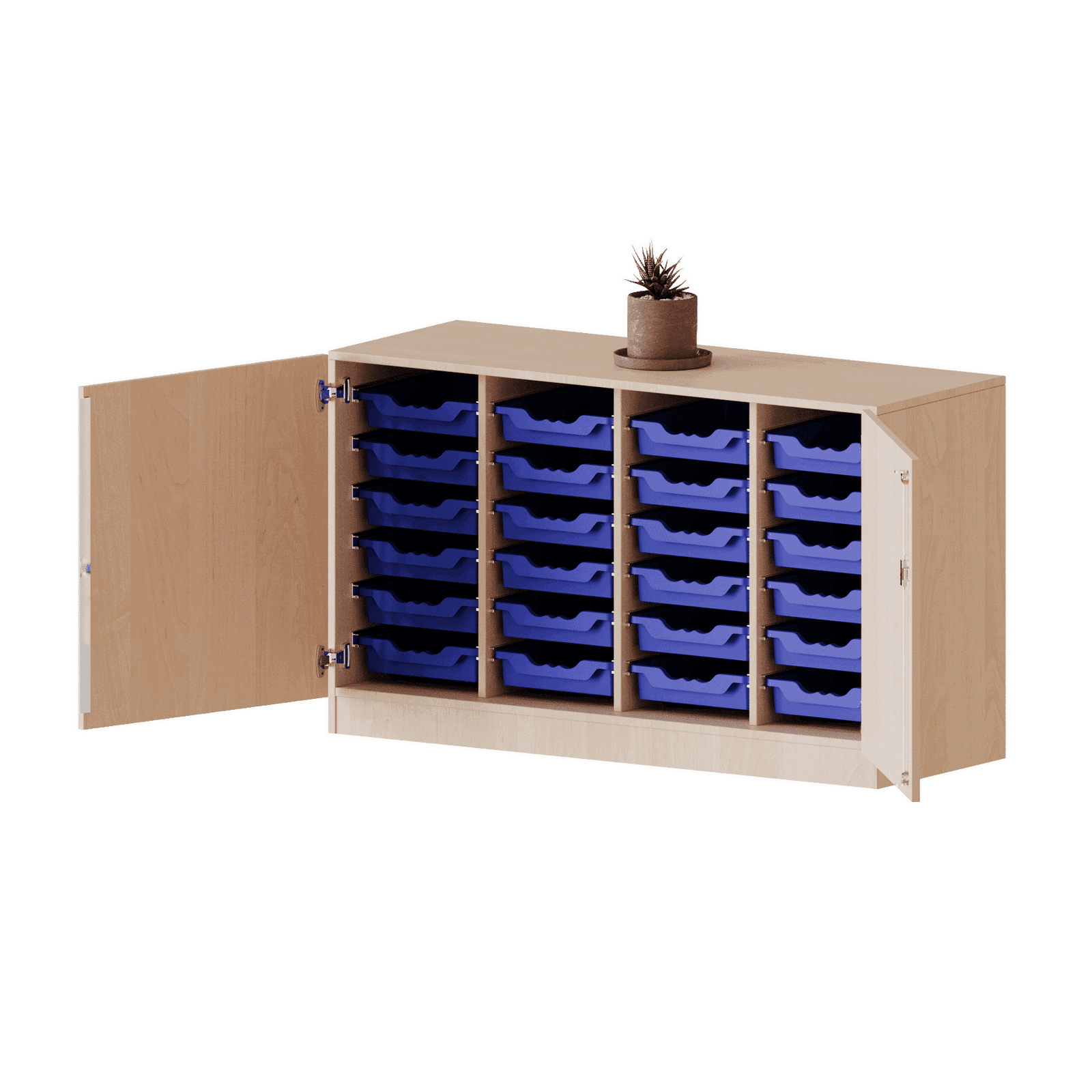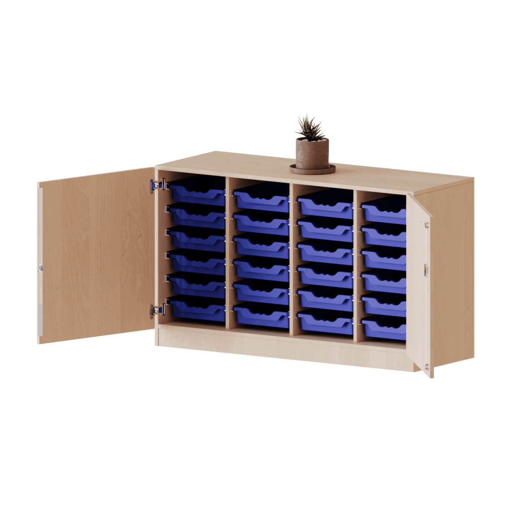 - 24 Boxen für ultimative Detail-Ordnung: Dieses Lowboard ist ein Paradies für alle, die höchste Ansprüche an Systematik stellen. Die 24 flachen ErgoTray Boxen erlauben eine extrem detaillierte Sortierung von Materialien bis zum Format DIN A4. Ob Sie Arbeitsblätter nach Fach, Stifte nach Farben oder unzählige Bastelutensilien sortieren – hier hat alles seinen festen Platz.
