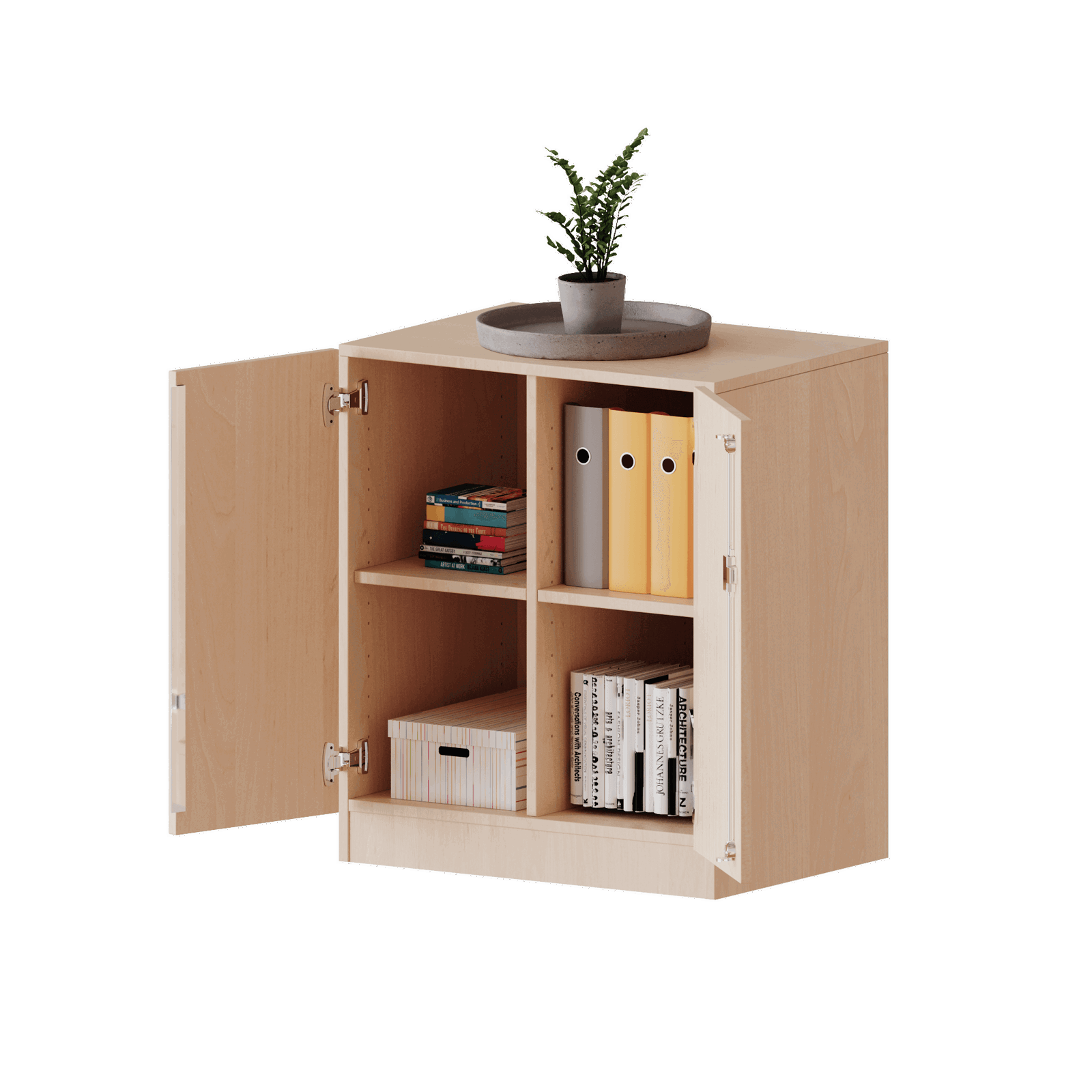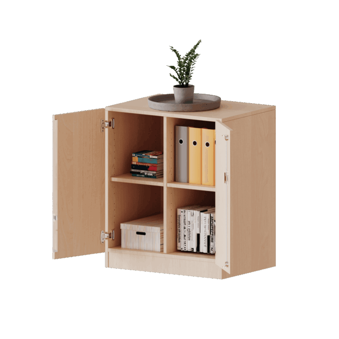 - Vier Fächer für klassische Ordnung: Dieses Sideboard ist ein wahres Raumwunder. Die vier großzügigen Fächer, verteilt auf zwei Reihen, bieten eine beeindruckende Kapazität für Ordner, Bücher und Spielzeug. Sie ermöglichen eine klare, thematische Sortierung für maximale Übersichtlichkeit.