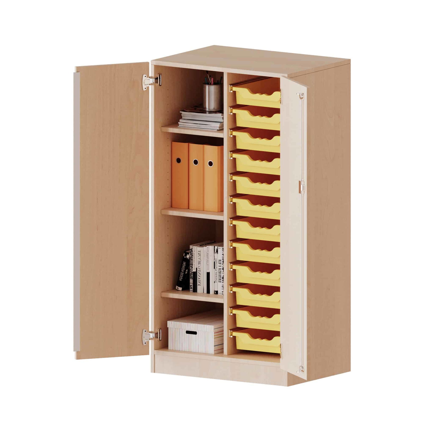 - Perfekt für die Feinsortierung: Die Ausstattung mit zwölf flachen ErgoTray Boxen ist ideal für die detaillierte Aufbewahrung von Arbeitsblättern bis DIN A4, Stiften, Bastelmaterialien oder anderen Kleinteilen. Ob nach Thema, Schüler oder Projekt – hier findet alles seinen festen, übersichtlichen Platz.
