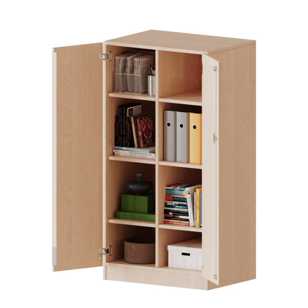 - Ideale Höhe für Interaktion: Mit seiner Höhe von 136 cm schirmt das Regal optisch ab, ohne den Raum komplett zu schließen. Es ermöglicht die Kommunikation über das Möbel hinweg und die Oberseite kann als zusätzliche Ablagefläche für Dekoration oder kurzfristig benötigte Materialien genutzt werden.