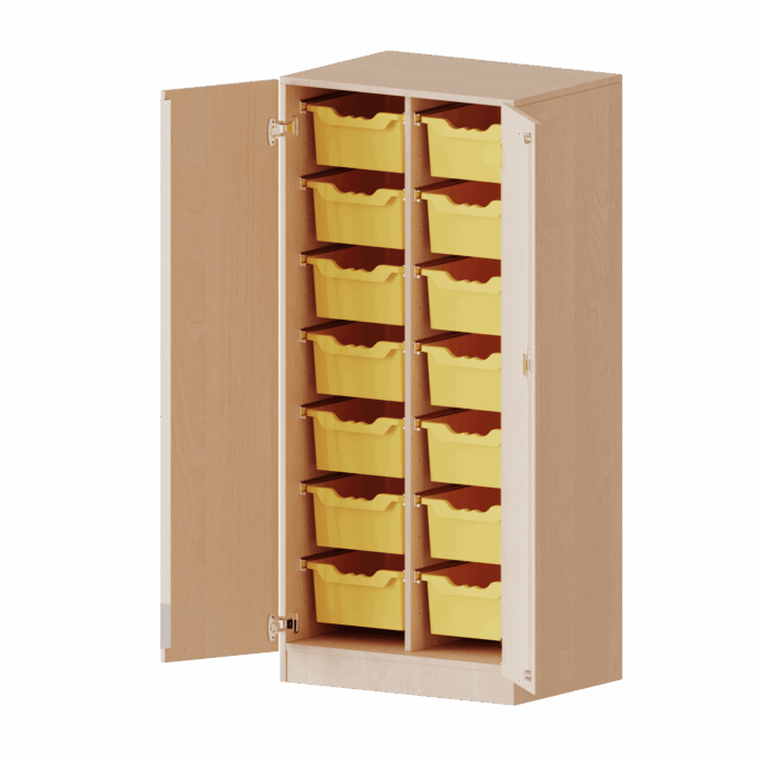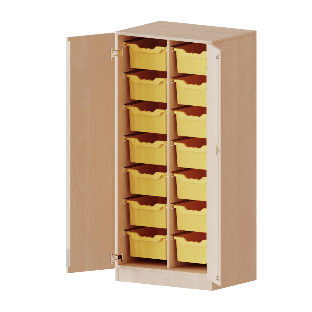 - 14 hohe Boxen für enormes Fassungsvermögen: Dieser Schrank ist vollständig für die Aufnahme von großen und sperrigen Gegenständen optimiert. Die 14 hohen ErgoTray-Boxen bieten eine beeindruckende Kapazität und sind ideal für die Aufbewahrung von großen Bausteinen, Spielzeugen, Textilien, Sportgeräten oder anderen voluminösen Materialien.