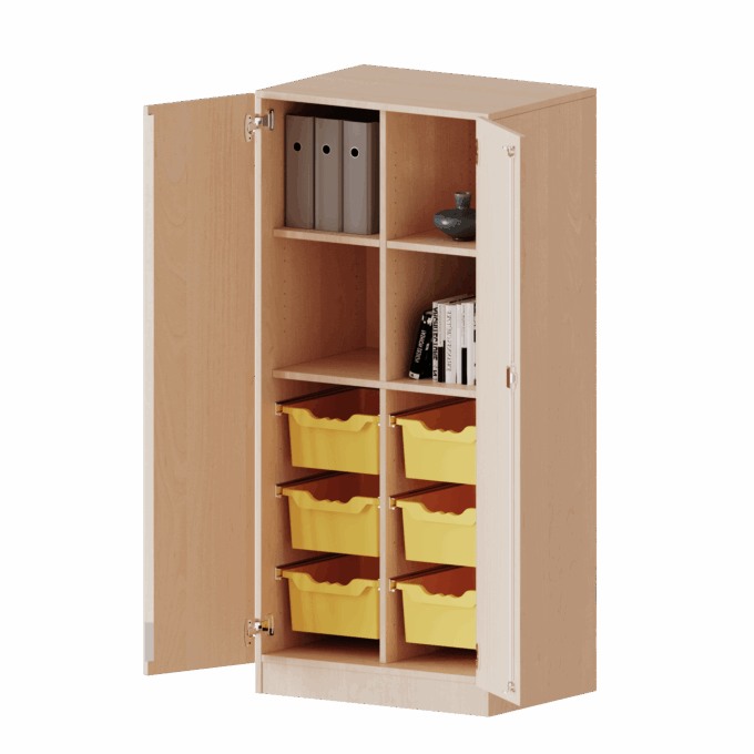 ErgoTray Schrank, zweireihig, 4 Ordnerhöhen – mit 6 hohen ErgoTray-Boxen – evo180 Serie