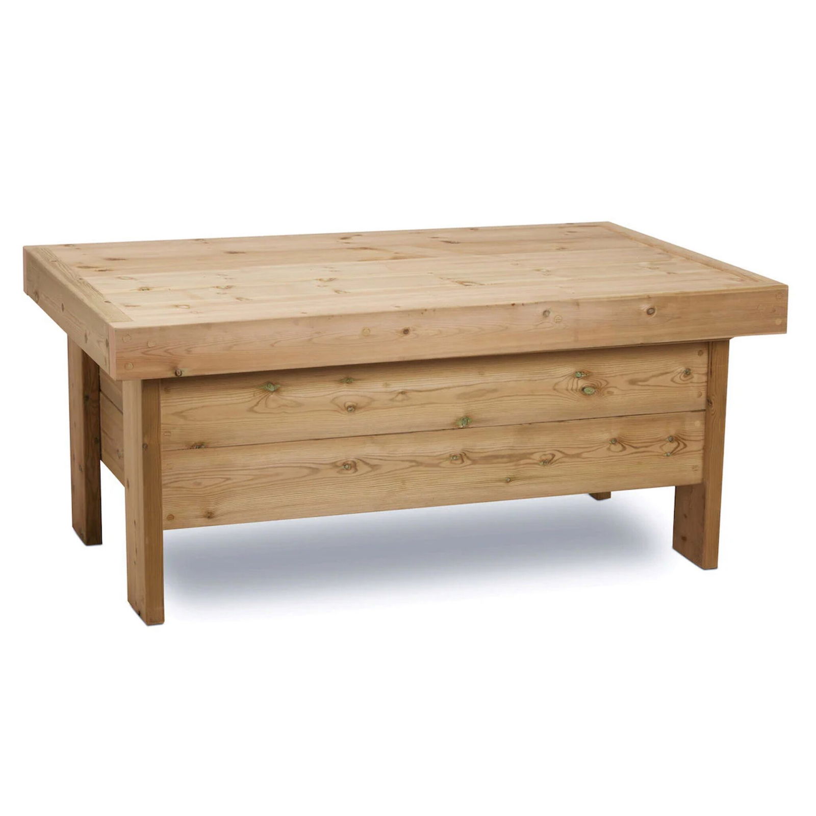 Hergestellt aus massivem, skandinavischem Rotholz, ist dieser Sandkasten für den intensiven Gebrauch in Betreuungseinrichtungen ausgelegt. Die stabile, freistehende Konstruktion ist extrem kippsicher. Höchste Sicherheitsstandards werden durch spiegelglatt geschliffene Oberflächen und sorgfältig abgerundete Kanten gewährleistet. - Wetterfest und sofort einsatzbereit