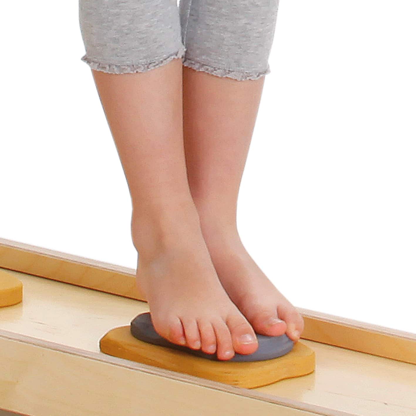Wie beim Wandern werden hier die Füße deutlich herausgefordert und trainiert. Kleine und große Feldsteine animieren zum Rechts-Links-Lauf und kräftigen die Fuß- und Beinmuskulatur.