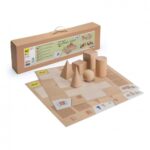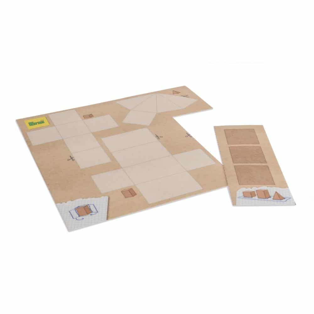 Das Set enthält 6 grundlegende geometrische Körper mit ihren Mäntelflächen. Durch das Spiel eignen sich die Kinder die grundlegenden geometrischen Prinzipien an. Sie lernen die Bedeutung der Formen, die Größe, die Körper und Flächen sowie Symmetrie und Harmonie kennen. Die geometrischen Körper sind aus massivem Buchenholz hergestellt. Sie sind 10 oder 6 cm hoch und haben einen Seitenlänge bzw. einen Durchmesser von 6 cm. Durch Befühlen werden den geometrischen Körpern die entsprechenden Eigenschaften zugeschrieben. Der didaktische Wert wird noch erweitert durch die dazugehörigen Mantelflächen, die ausgeschnitten werden können, um damit die Körper abzuformen. Ebenso können Vergleiche der Seitenansichten und Grundrisse/Stellflächen angestellt werden.
