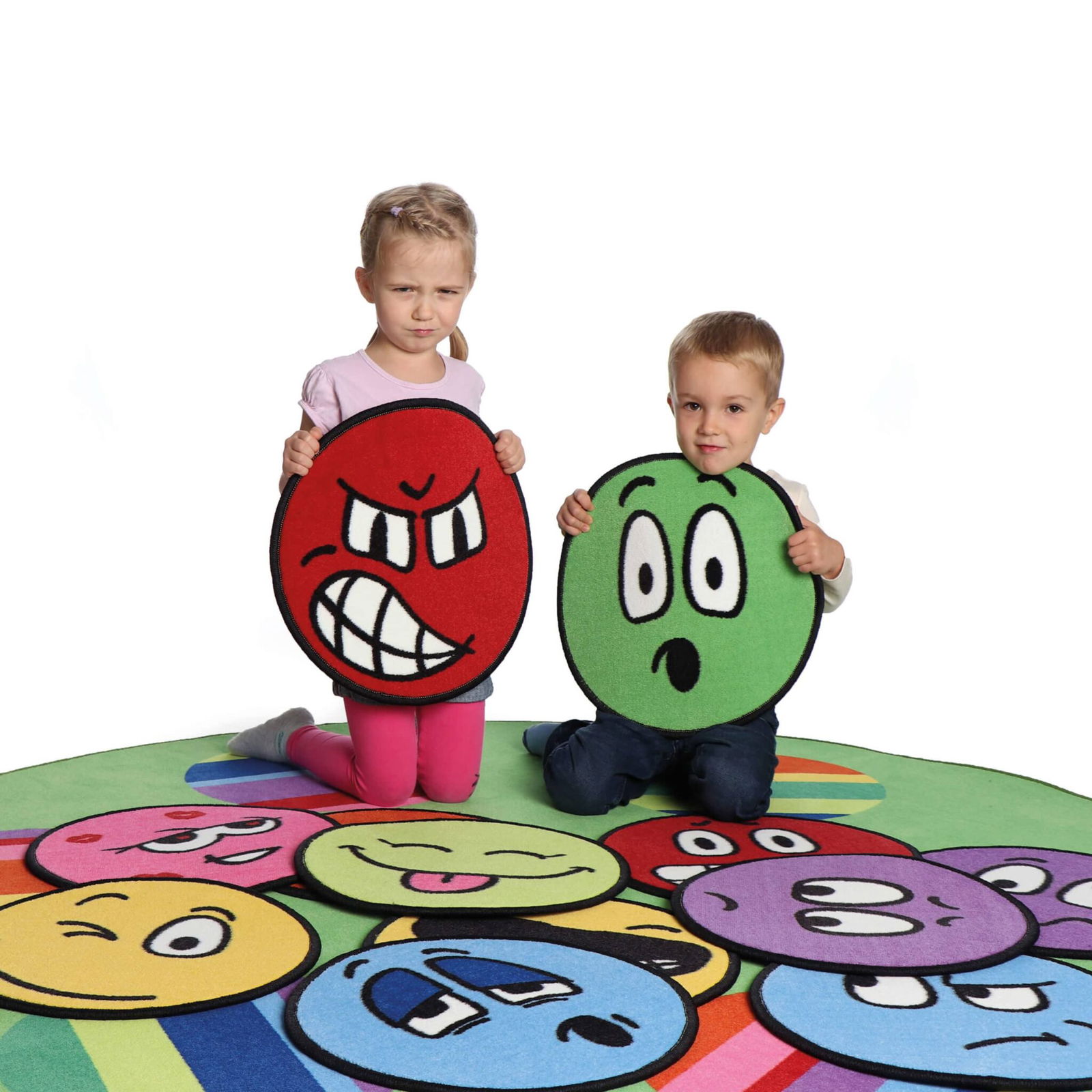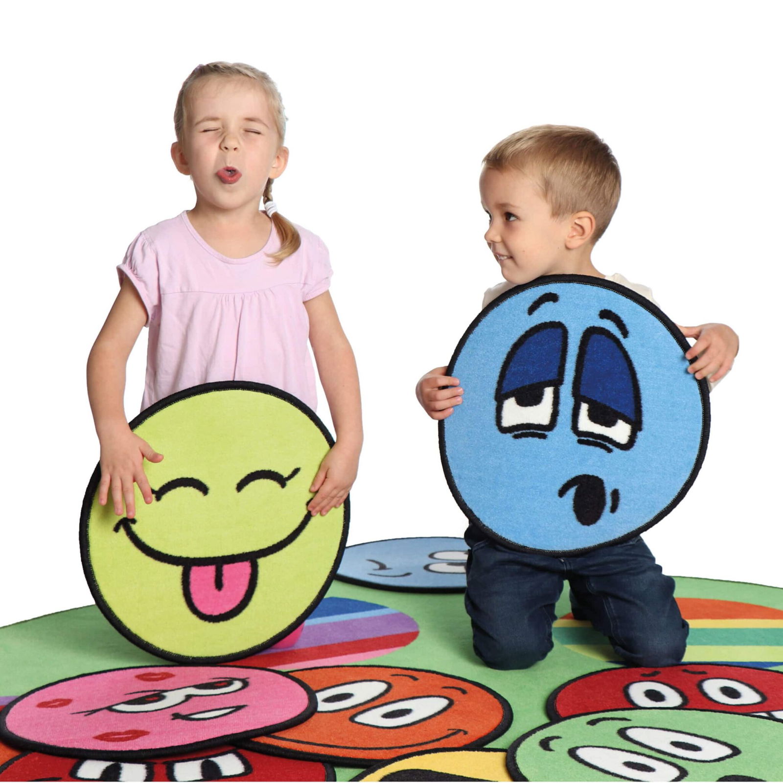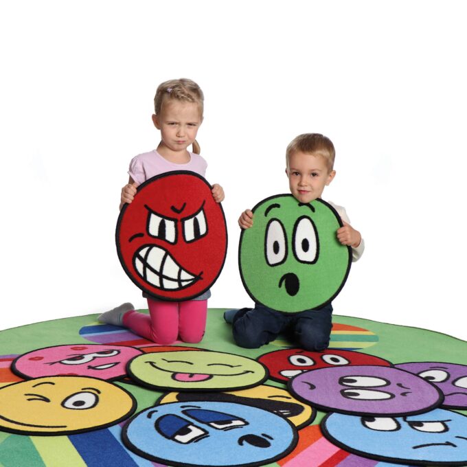 Die ERZI LilaLaune Teppiche bieten eine Vielzahl an Spiel- und Lernmöglichkeiten. Sie eignen sich sehr gut um Kindern Emotionen näher zu bringen, sich seiner Gefühle bewußt zu werden und besser ausdrücken zu können. Ebenso um die Gefühle Anderer besser kennen zu lernen und zu verstehen. Die kleinen Sitzteppiche haben ebenso, wie alle Erzi-Teppiche eine strapazierfähige Oberfläche und einen Kältestopp durch zusätzlichen Filz an der Unterseite. Sie sind nach allen gesetzlichen Anforderungen (EU) geprüft.. Unsere Teppiche entsprechen allen Normen für die Zulassung in öffentlichen Einrichtungen und sind natürlich schadstofffrei.
