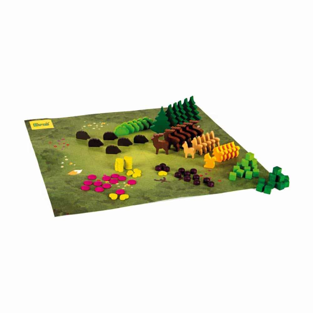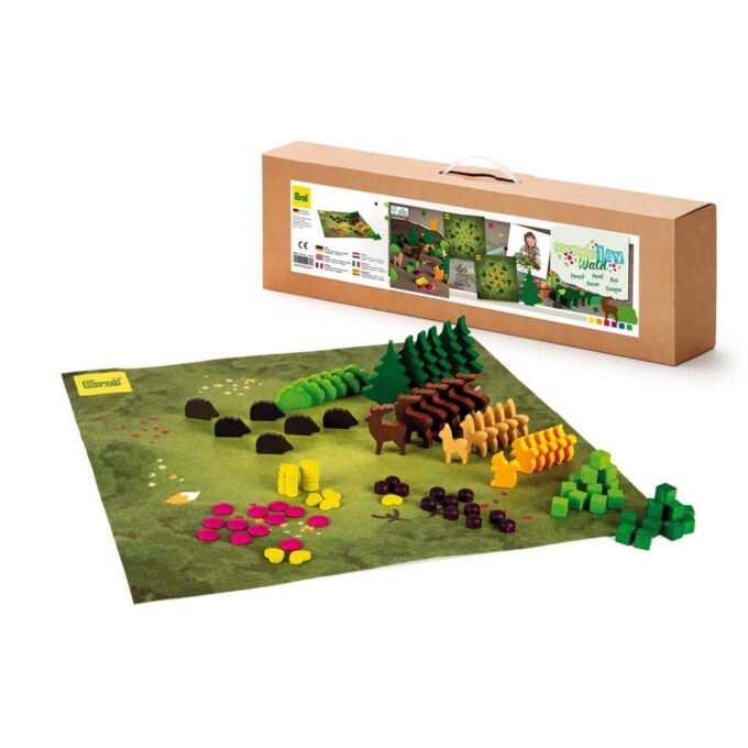 - Inhalt: 102 Teile zum Legen und Spielen, 1 Spielmatte, farbig bedruckt (40 x 40 cm), 1 Leporello