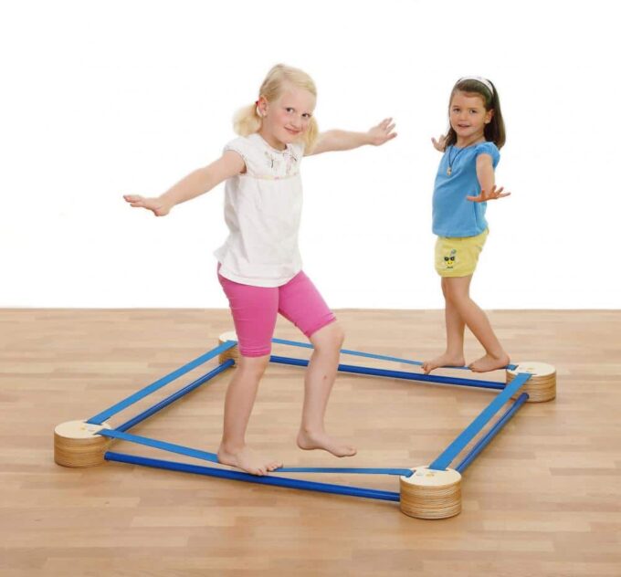 Vier gleiche Spots bilden einen Rundparcours in Form eines Quadrats. Bis zu vier Kinder können auf diesem Parcours Balance und Schnelligkeit unter Beweis stellen.