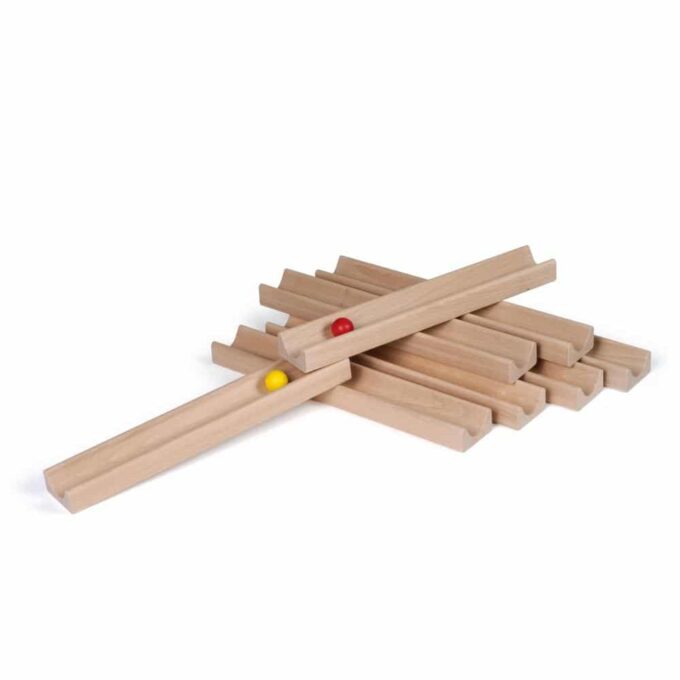 - Inhalt: 8 Holzbahnen, 2 Holzkugeln, 1 Tragebeutel