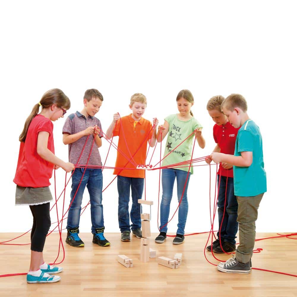 - Aktive Abstimmung: Der Turmbau gelingt nur durch ständigen Dialog. Die Teilnehmer müssen Handlungen beschreiben, Kommandos geben oder Vorschläge machen. Dies stärkt die verbale Ausdrucksfähigkeit und das aktive Zuhören.